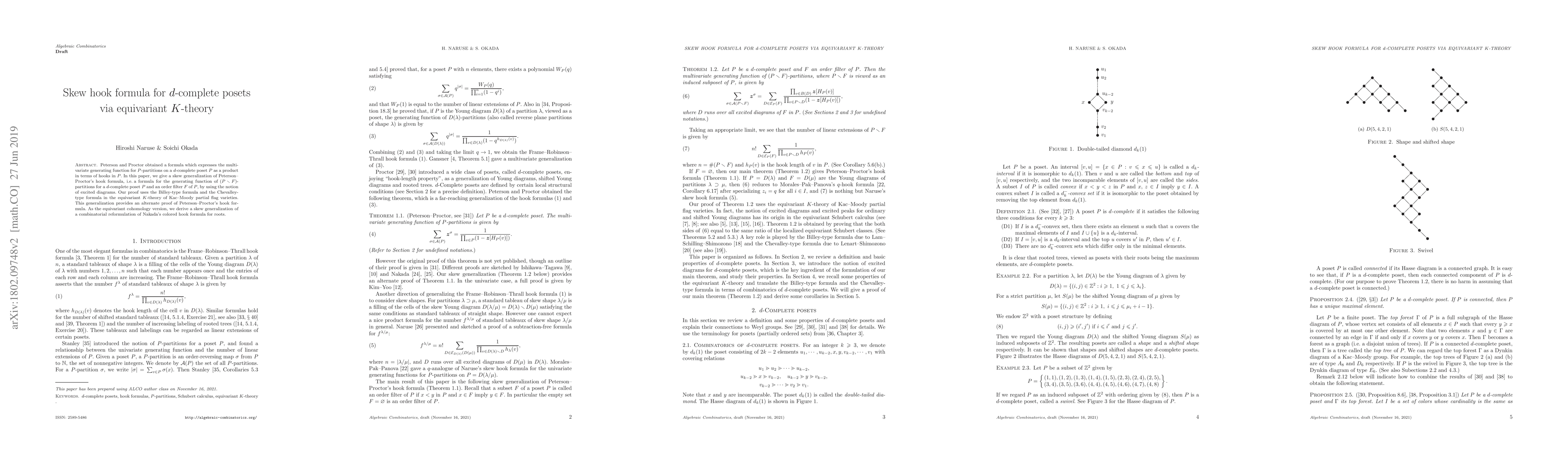 This paper extends Peterson and Proctor's hook formula for $d$-complete posets by introducing a skew generalization using excited diagrams. It provides a new proof for the original formula through Billey-type and Chevalley-type formulas in equivariant $K$-theory of Kac-Moody partial flag varieties.
