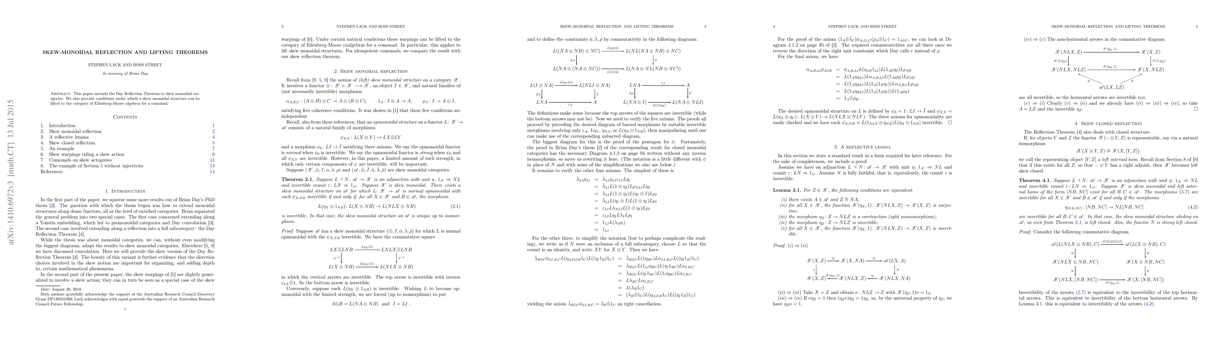 This paper extends the Day Reflection Theorem to skew monoidal categories, demonstrating how reflective subcategories can inherit a skew monoidal structure that makes the adjunction monoidal. It also establishes conditions for lifting skew monoidal structures to Eilenberg-Moore algebras for a comonad, highlighting the significance of direction choices in skew notions.