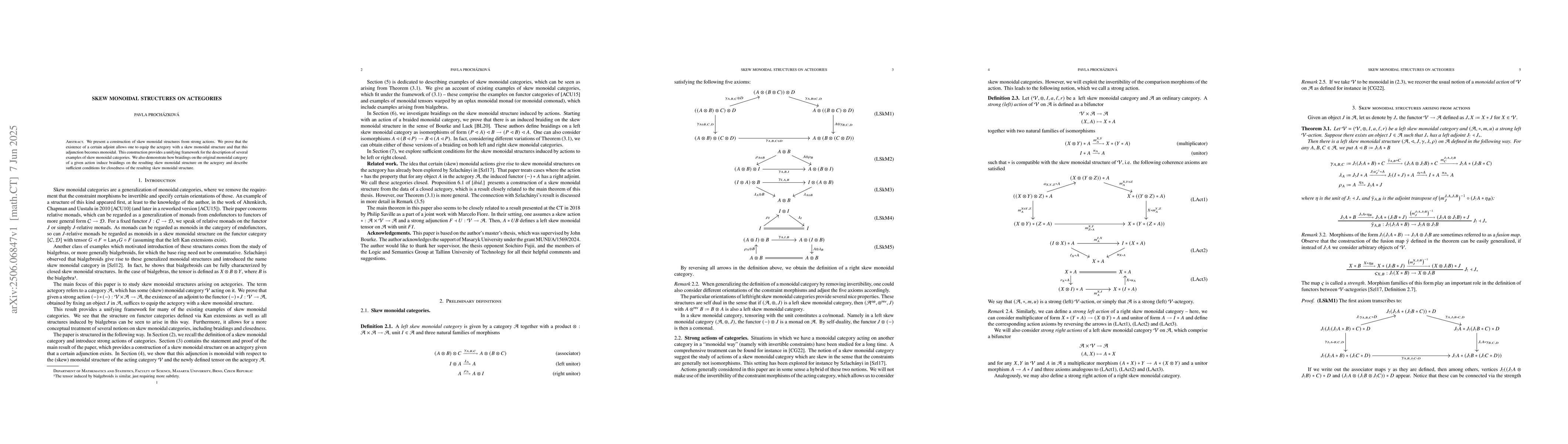 We present a construction of skew monoidal structures from strong actions. We prove that the existence of a certain adjoint allows one to equip the actegory with a skew monoidal structure and that this adjunction becomes monoidal. This construction provides a unifying framework for the description of several examples of skew monoidal categories. We also demonstrate how braidings on the original monoidal category of a given action induce braidings on the resulting skew monoidal structure on the actegory and describe sufficient conditions for closedness of the resulting skew monoidal structure.