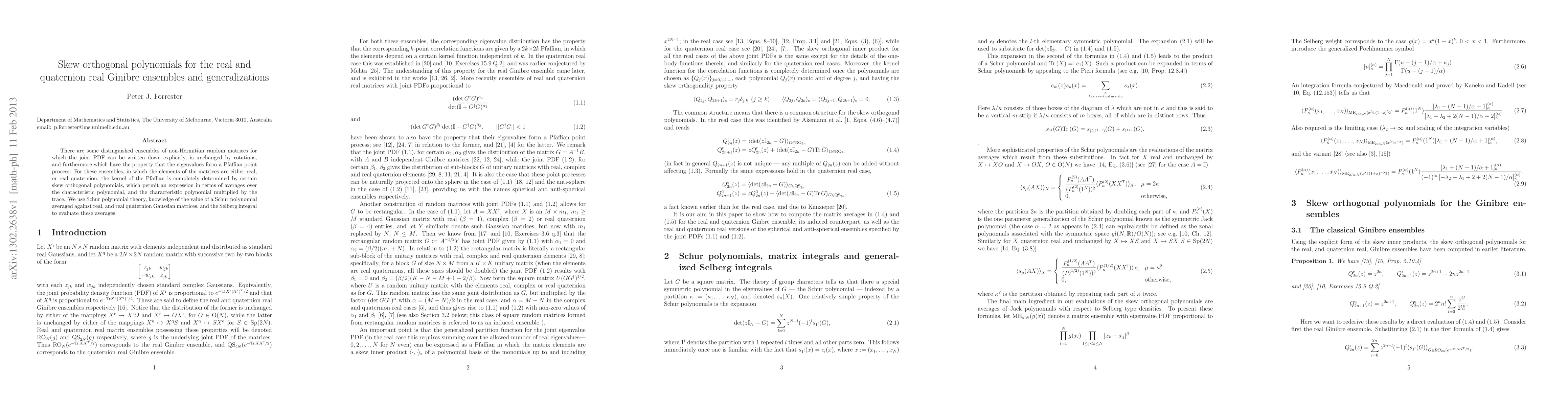 This paper explores skew orthogonal polynomials associated with real and quaternion real Ginibre ensembles, revealing their connection to Pfaffian point processes. It employs Schur polynomial theory and the Selberg integral to evaluate averages over the characteristic polynomials of these matrices.
