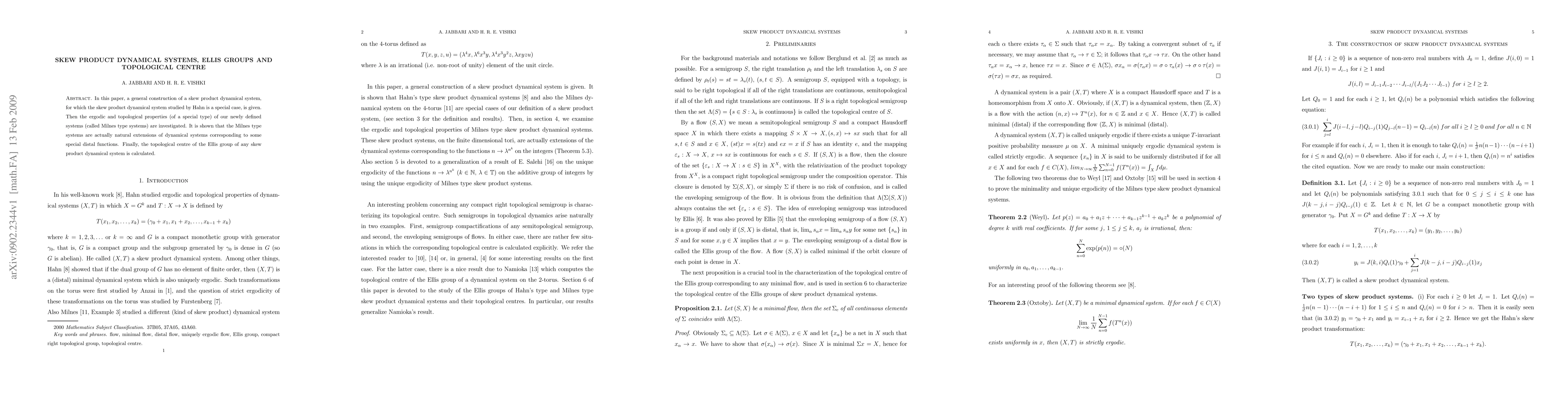 This paper constructs skew product dynamical systems with new properties, extends special distal functions, and calculates the topological centre of the Ellis group for such systems, showing connections to Hahn's work on skew products.
