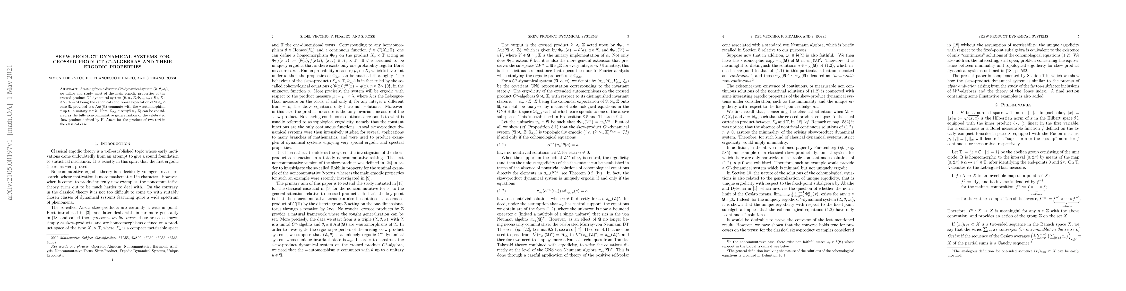 Starting from a discrete $C^*$-dynamical system $(\mathfrak{A}, \theta, \omega_o)$, we define and study most of the main ergodic properties of the crossed product $C^*$-dynamical system $(\mathfrak{A}\rtimes_\alpha\mathbb{Z}, \Phi_{\theta, u},\om_o\circ E)$, $E:\mathfrak{A}\rtimes_\alpha\mathbb{Z}\rightarrow\ga$ being the canonical conditional expectation of $\mathfrak{A}\rtimes_\alpha\mathbb{Z}$ onto $\mathfrak{A}$, provided $\a\in\aut(\ga)$ commute with the $*$-automorphism $\th$ up tu a unitary $u\in\ga$. Here, $\Phi_{\theta, u}\in\aut(\mathfrak{A}\rtimes_\alpha\mathbb{Z})$ can be considered as the fully noncommutative generalisation of the celebrated skew-product defined by H. Anzai for the product of two tori in the classical case.