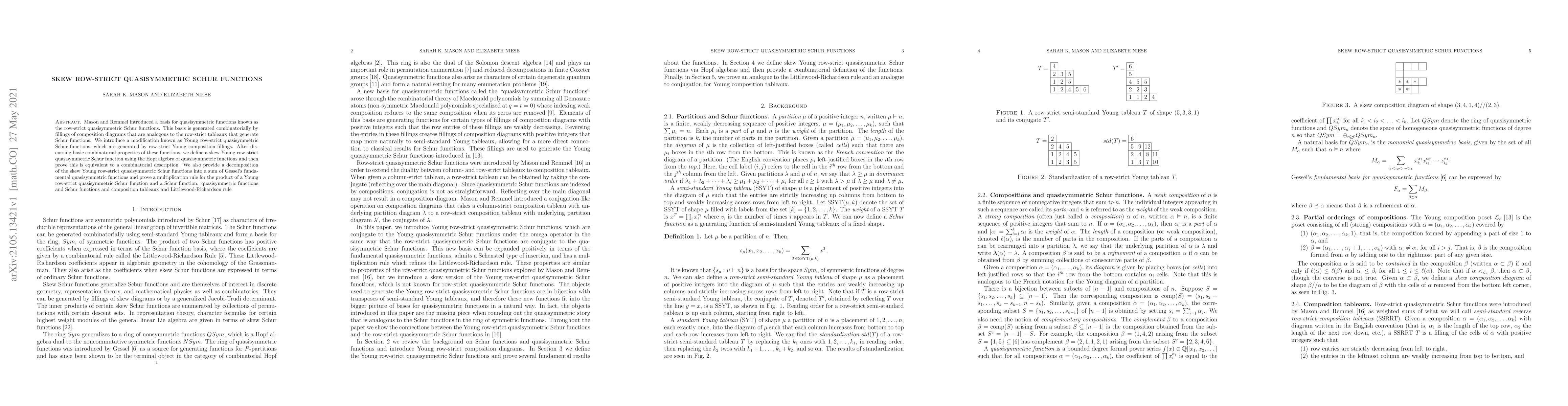 This paper introduces Young row-strict quasisymmetric Schur functions, a modified basis for quasisymmetric functions generated by row-strict fillings of Young composition diagrams. It establishes a skew version and proves its equivalence to a combinatorial description, alongside a decomposition into Gessel's fundamental quasisymmetric functions and a multiplication rule involving Schur functions.