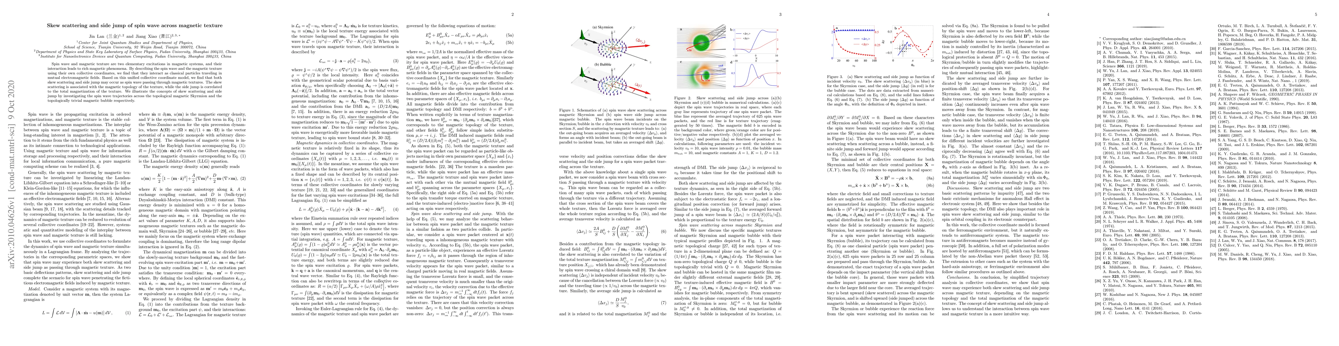 This paper explores the interaction between spin waves and magnetic textures, demonstrating skew scattering and side jump phenomena. It uses a collective coordinate model to describe these interactions, linking skew scattering to the magnetic texture's topology and side jump to its total magnetization.