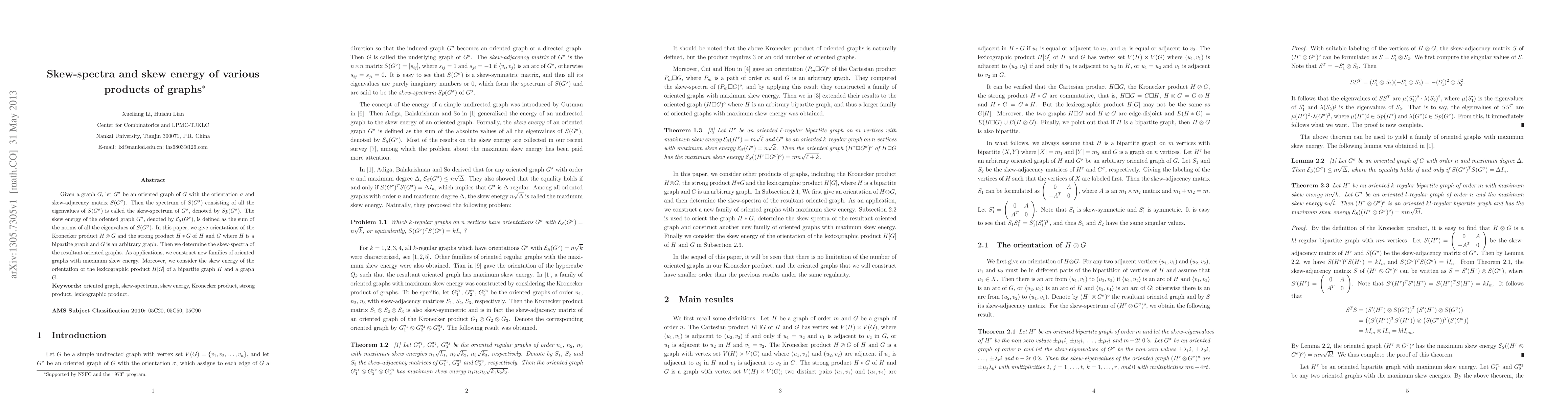 This paper investigates the skew-spectra and skew energy of various graph products, including the Kronecker product, strong product, and lexicographic product. It determines the skew-spectra for these products and constructs new oriented graphs with maximum skew energy.