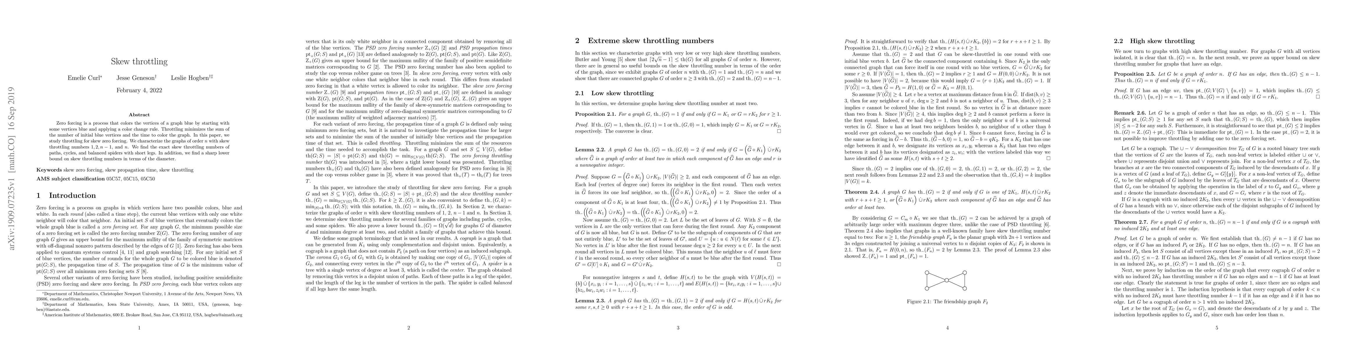 This paper investigates skew zero forcing throttling, focusing on minimizing the sum of initial blue vertices and time to color graphs. It characterizes skew throttling numbers for various graph types and establishes exact skew throttling numbers for paths, cycles, and balanced spiders, along with a sharp lower bound related to graph diameter.