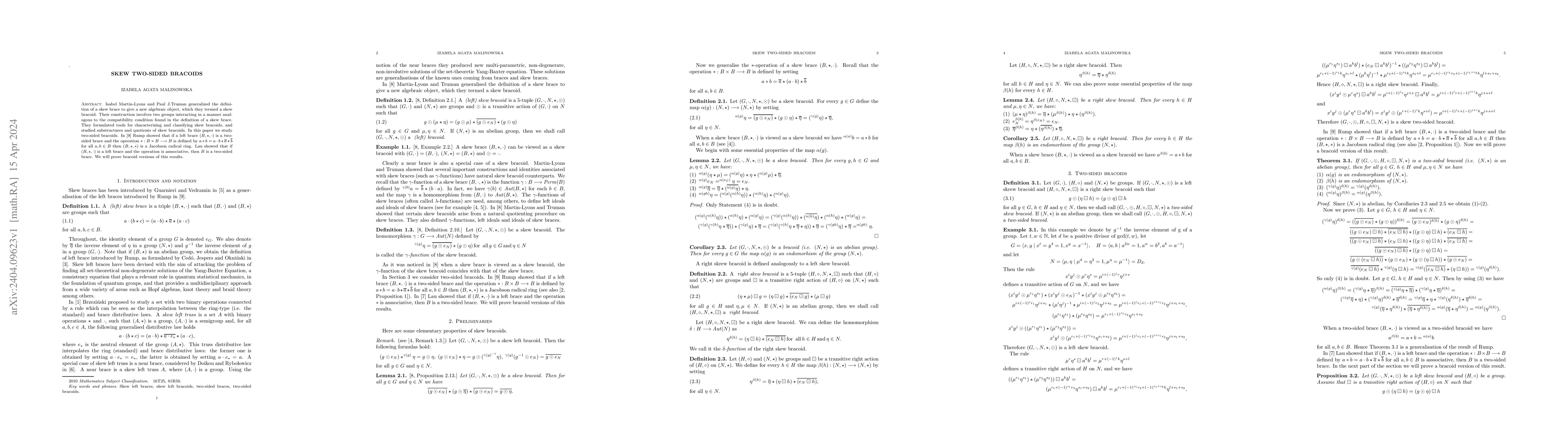 This paper generalizes the concept of skew braces to skew two-sided bracoids, exploring their algebraic properties and structures. It establishes results analogous to those shown for left braces, proving that certain operations on two-sided bracoids yield a Jacobson radical ring structure.