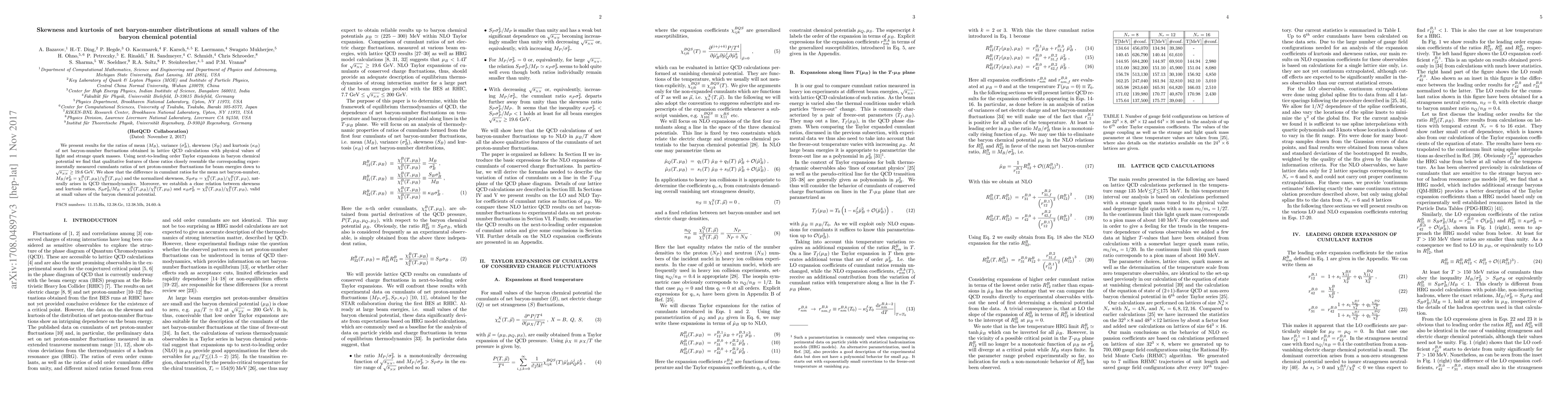 This paper investigates net baryon-number fluctuations in lattice QCD, finding that ratios of mean, variance, skewness, and kurtosis closely match experimental measurements for proton-number fluctuations at low energies. It reveals a natural emergence of these ratios in QCD thermodynamics and establishes a relationship between skewness and kurtosis ratios at small baryon chemical potentials.