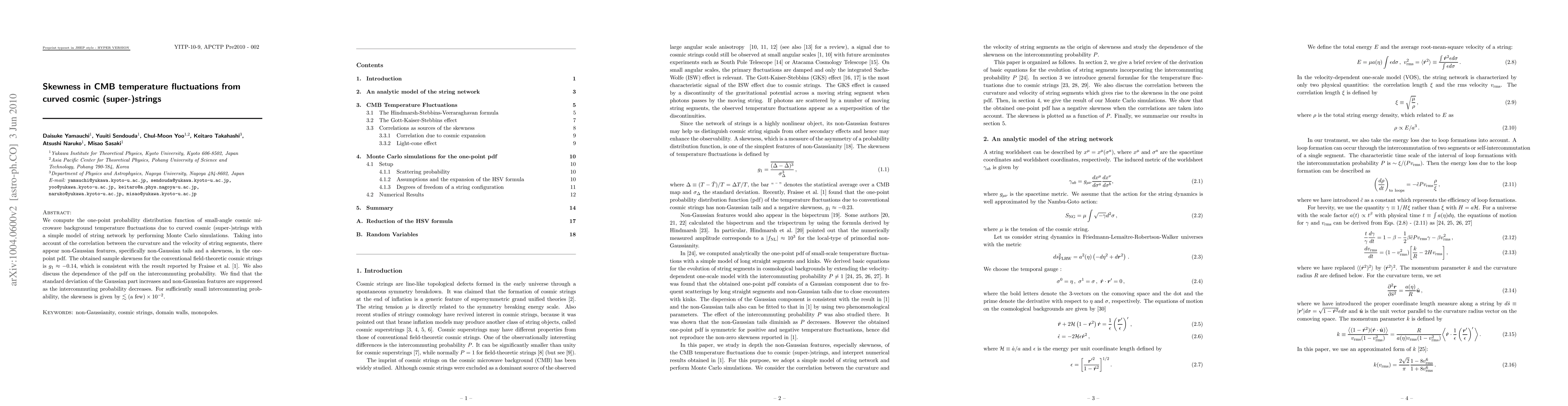 This paper investigates the one-point probability distribution of cosmic microwave background temperature fluctuations caused by curved cosmic (super-)strings, revealing non-Gaussian features including skewness through Monte Carlo simulations. The computed skewness for conventional cosmic strings is consistent with previous results, and it diminishes with lower intercommuting probabilities.