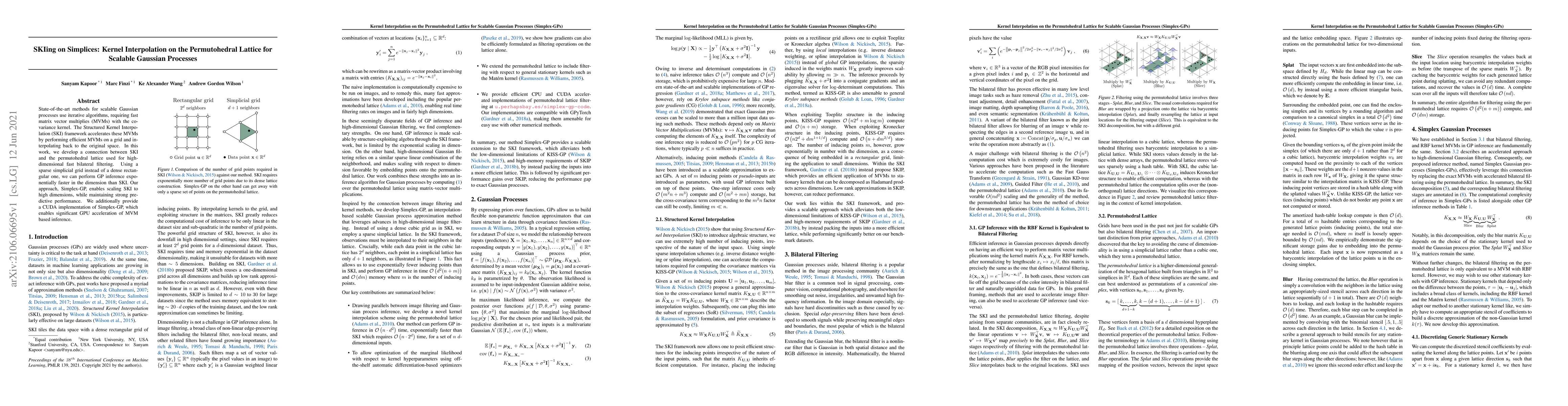 This paper introduces Simplex-GP, a scalable Gaussian process method that leverages the permutohedral lattice and sparse simplicial grids for efficient kernel interpolation, achieving exponential speedups in high-dimensional settings compared to traditional methods, with a CUDA implementation for GPU acceleration.
