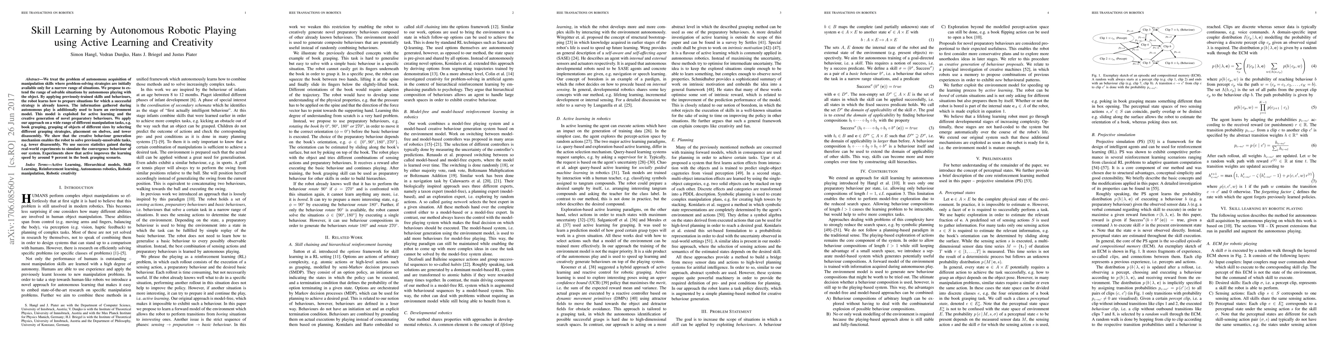 We treat the problem of autonomous acquisition of manipulation skills where problem-solving strategies are initially available only for a narrow range of situations. We propose to extend the range of solvable situations by autonomous playing with the object. By applying previously-trained skills and behaviours, the robot learns how to prepare situations for which a successful strategy is already known. The information gathered during autonomous play is additionally used to learn an environment model. This model is exploited for active learning and the creative generation of novel preparatory behaviours. We apply our approach on a wide range of different manipulation tasks, e.g. book grasping, grasping of objects of different sizes by selecting different grasping strategies, placement on shelves, and tower disassembly. We show that the creative behaviour generation mechanism enables the robot to solve previously-unsolvable tasks, e.g. tower disassembly. We use success statistics gained during real-world experiments to simulate the convergence behaviour of our system. Experiments show that active improves the learning speed by around 9 percent in the book grasping scenario.