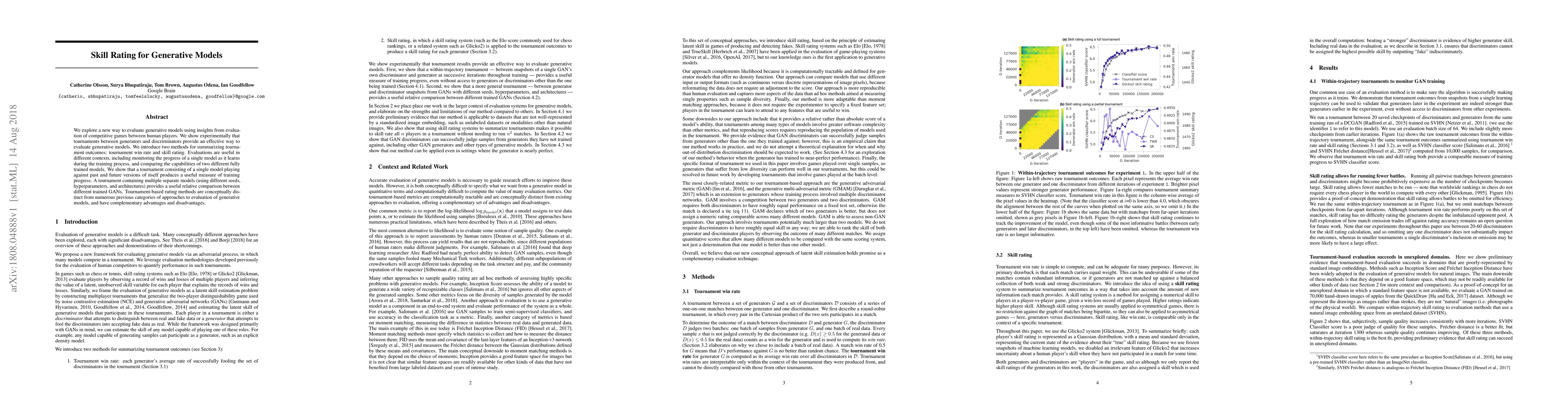 Researchers evaluate generative models using tournaments between generators and discriminators to determine skill ratings, offering a novel approach to model comparison and training progress monitoring.
