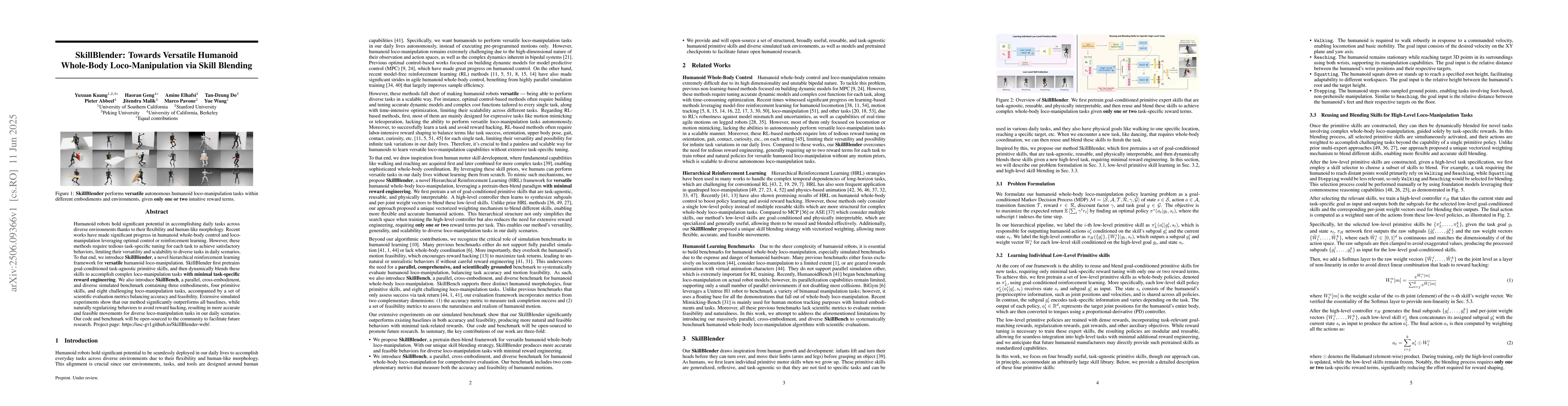 SkillBlender introduces a novel hierarchical reinforcement learning framework for versatile humanoid loco-manipulation, outperforming baselines with minimal task-specific tuning and natural regularization of behaviors.