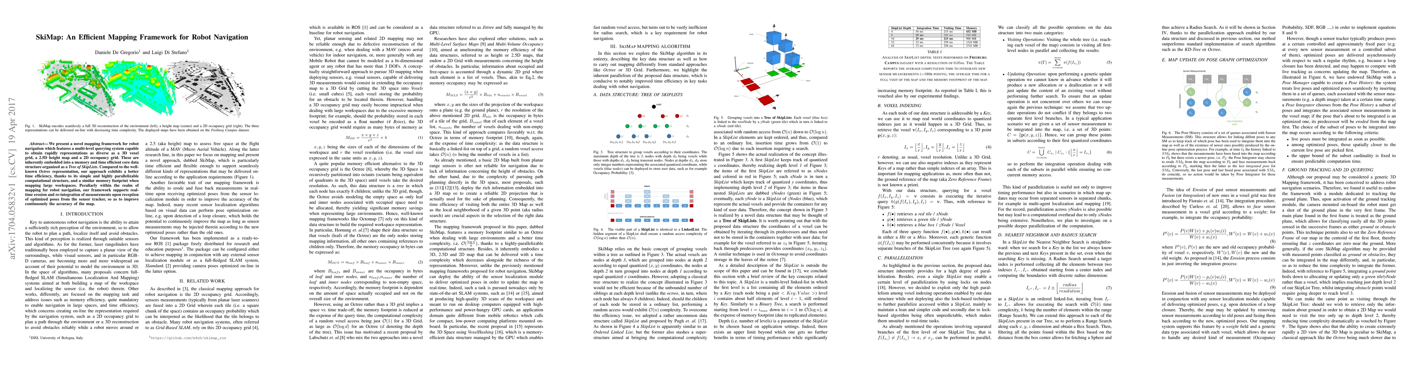 SkiMap is an efficient mapping framework for robot navigation that utilizes a multi-level querying system to generate diverse map representations. It employs a Tree of SkipLists for memory and time efficiency, outperforming the Octree in speed while maintaining similar memory usage.