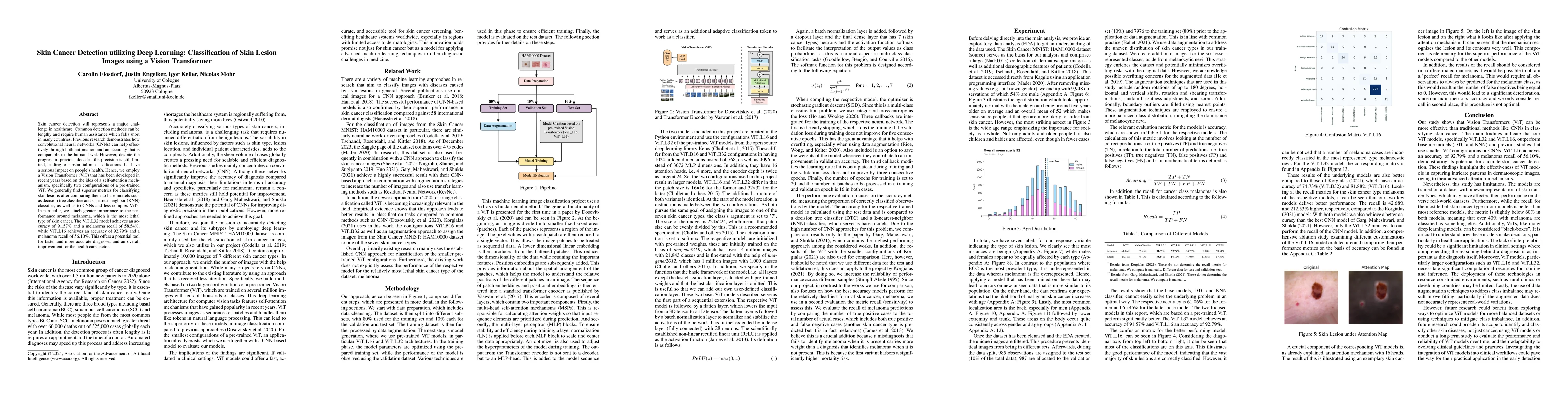 This research investigates the use of Vision Transformers (ViTs) for more precise skin cancer detection by classifying skin lesion images. The study finds that pre-trained ViT models outperform traditional CNNs and simpler classifiers, achieving an accuracy of 91.57% and 92.79% respectively, with notable recall rates for melanoma, the deadliest skin cancer type, indicating a potential improvement in healthcare diagnostics.