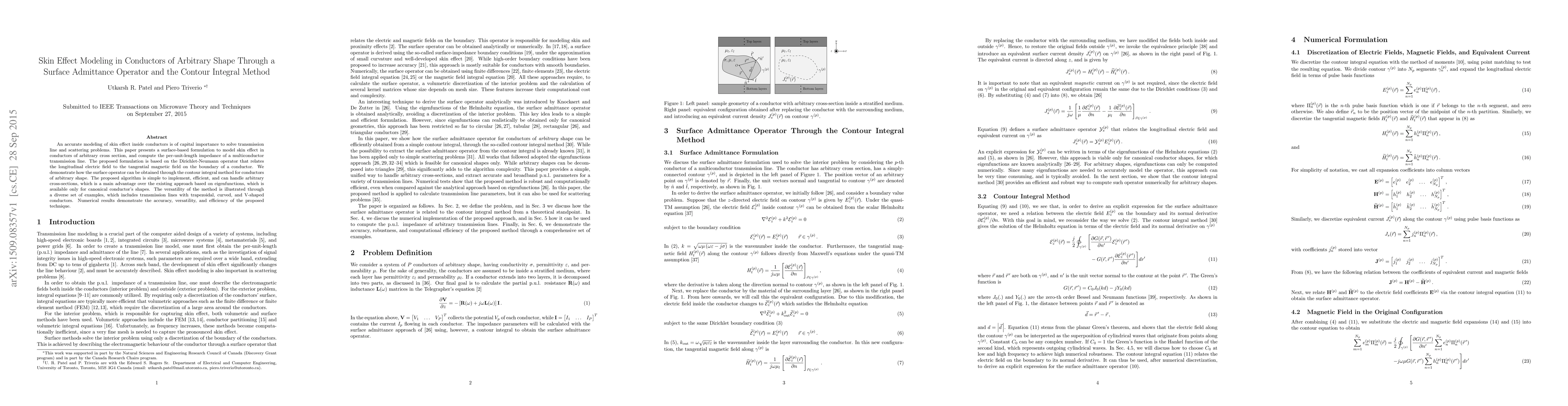 An accurate modeling of skin effect inside conductors is of capital importance to solve transmission line and scattering problems. This paper presents a surface-based formulation to model skin effect in conductors of arbitrary cross section, and compute the per-unit-length impedance of a multiconductor transmission line. The proposed formulation is based on the Dirichlet-Neumann operator that relates the longitudinal electric field to the tangential magnetic field on the boundary of a conductor. We demonstrate how the surface operator can be obtained through the contour integral method for conductors of arbitrary shape. The proposed algorithm is simple to implement, efficient, and can handle arbitrary cross-sections, which is a main advantage over the existing approach based on eigenfunctions, which is available only for canonical conductor's shapes. The versatility of the method is illustrated through a diverse set of examples, which includes transmission lines with trapezoidal, curved, and V-shaped conductors. Numerical results demonstrate the accuracy, versatility, and efficiency of the proposed technique.