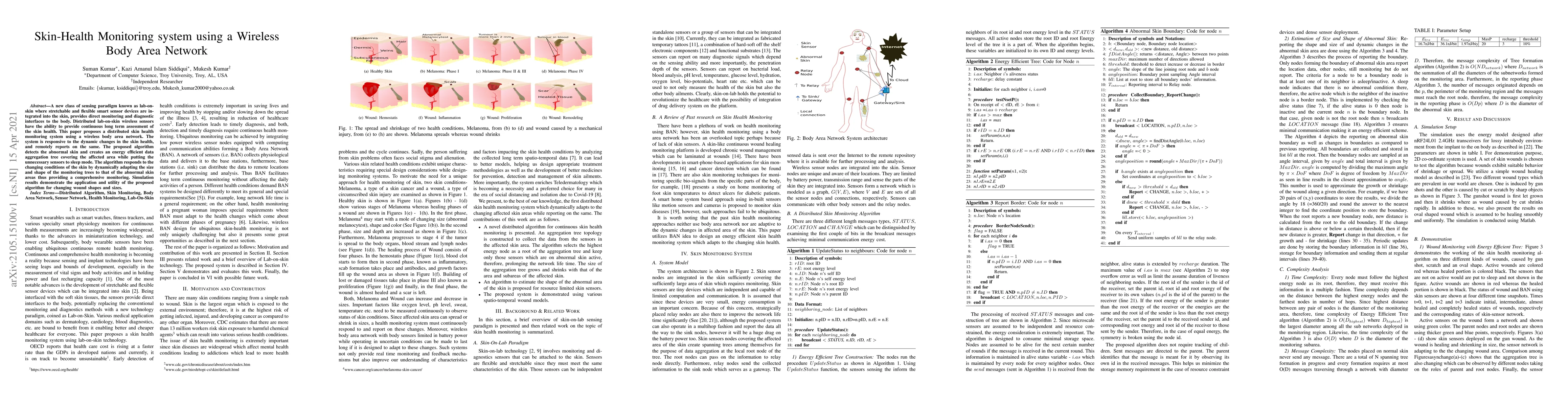 This paper proposes a wireless body area network for continuous skin health monitoring using lab-on-skin technology, integrating flexible sensors into the skin. The system dynamically adapts to skin changes, employing an energy-efficient algorithm that creates a data aggregation tree to focus on affected areas while putting idle sensors to sleep.