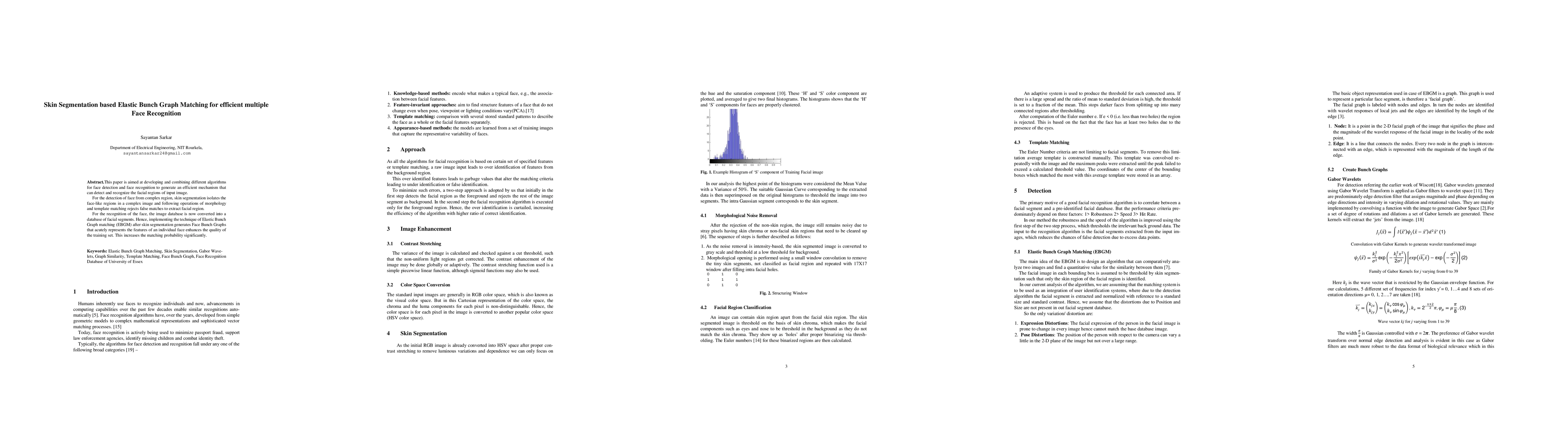 This paper is aimed at developing and combining different algorithms for face detection and face recognition to generate an efficient mechanism that can detect and recognize the facial regions of input image. For the detection of face from complex region, skin segmentation isolates the face-like regions in a complex image and following operations of morphology and template matching rejects false matches to extract facial region. For the recognition of the face, the image database is now converted into a database of facial segments. Hence, implementing the technique of Elastic Bunch Graph matching (EBGM) after skin segmentation generates Face Bunch Graphs that acutely represents the features of an individual face enhances the quality of the training set. This increases the matching probability significantly.