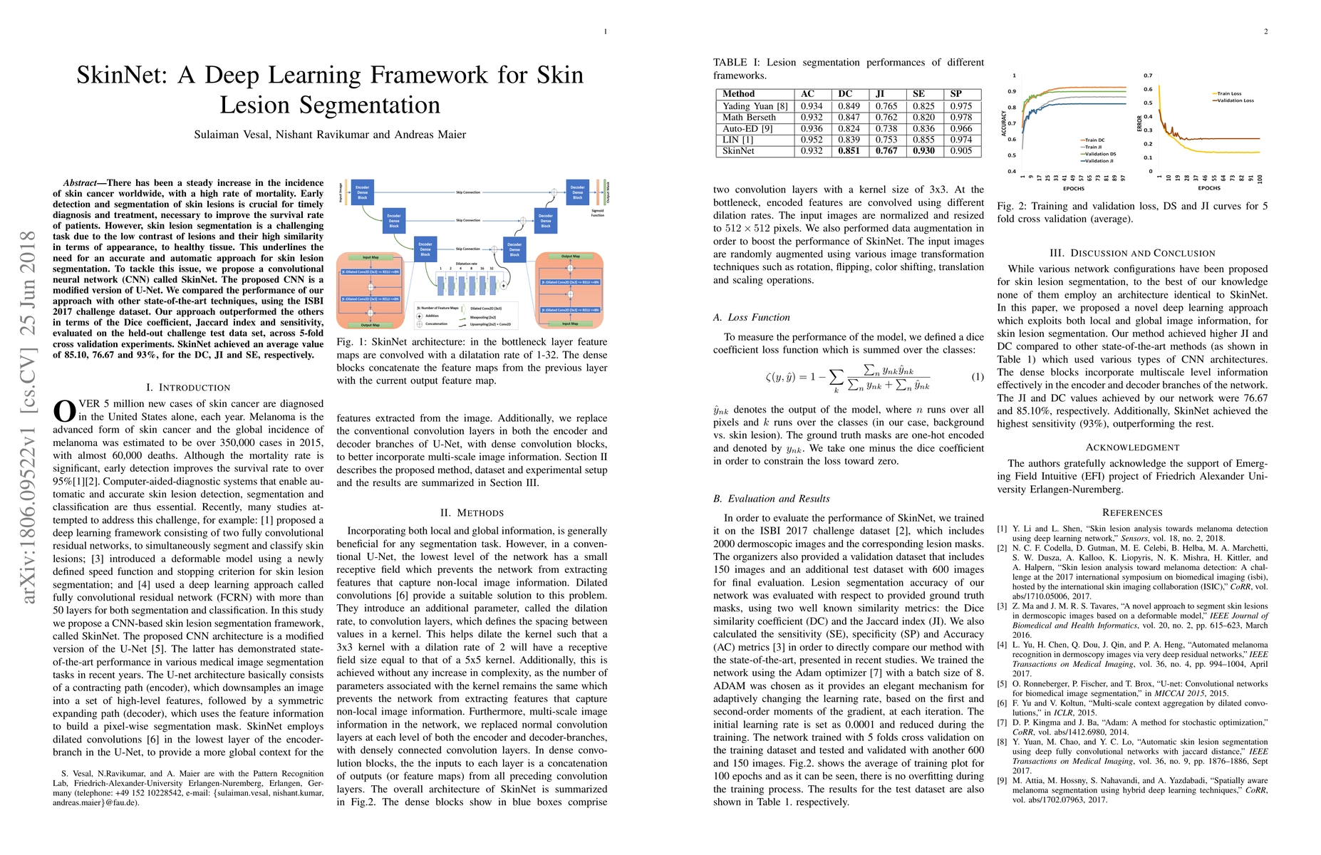 SkinNet achieved high scores in Dice coefficient, Jaccard index, and sensitivity, making it a valuable tool for early detection and treatment of skin cancer.
