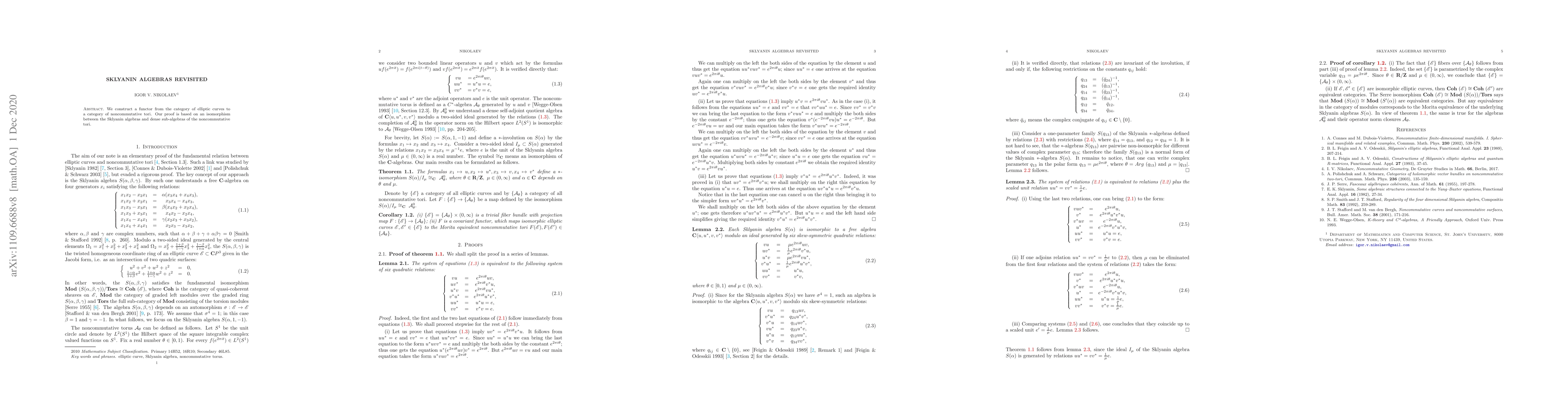 Researchers created a connection between Sklyanin algebras and noncommutative tori, using an isomorphism to establish a functor from elliptic curves to the category of noncommutative tori.