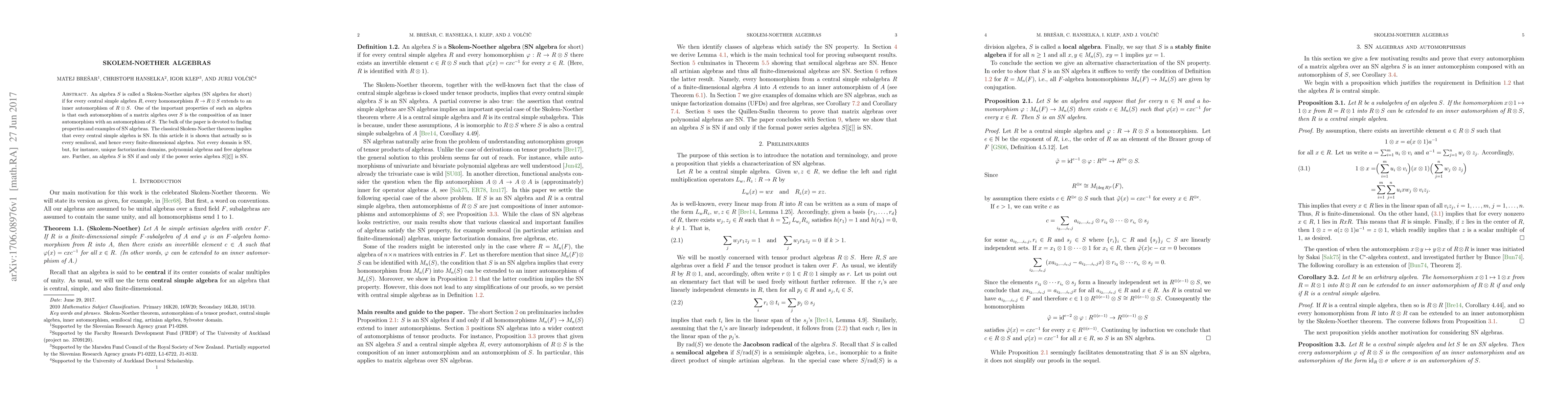 This paper explores Skolem-Noether algebras (SN algebras), characterized by their property that every homomorphism from a central simple algebra to a tensor product with SN algebra extends to an inner automorphism. The paper demonstrates that all semilocal and finite-dimensional algebras are SN, while not all domains share this property, though unique factorization domains, polynomial algebras, and free algebras do.