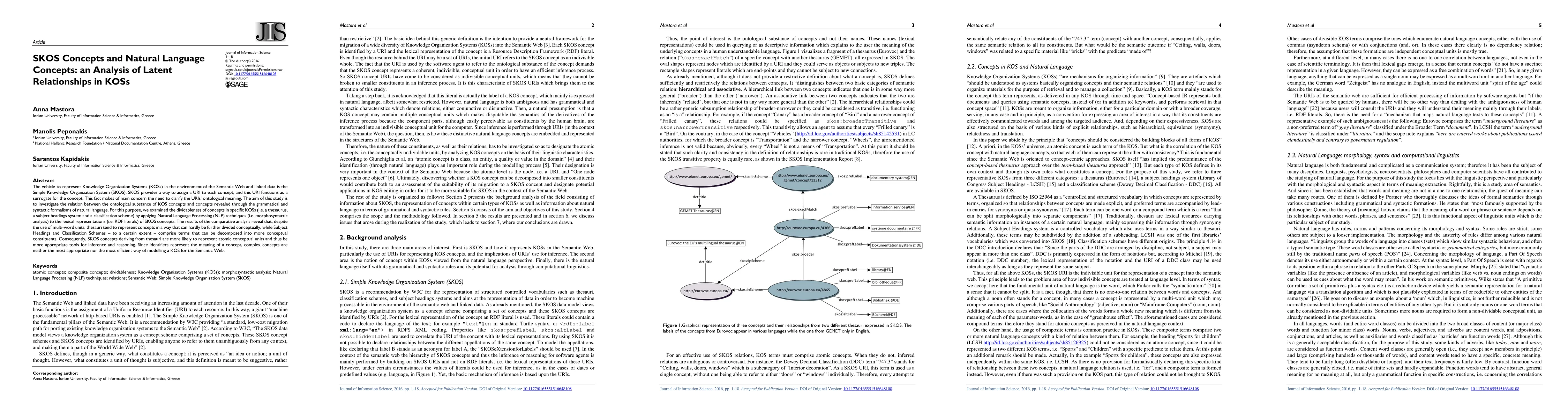 This study analyzed how Knowledge Organization Systems (KOSs) represent concepts in natural language, comparing their ability to divide concepts into smaller units, with theses being most indivisible and classification schemes more divisible.