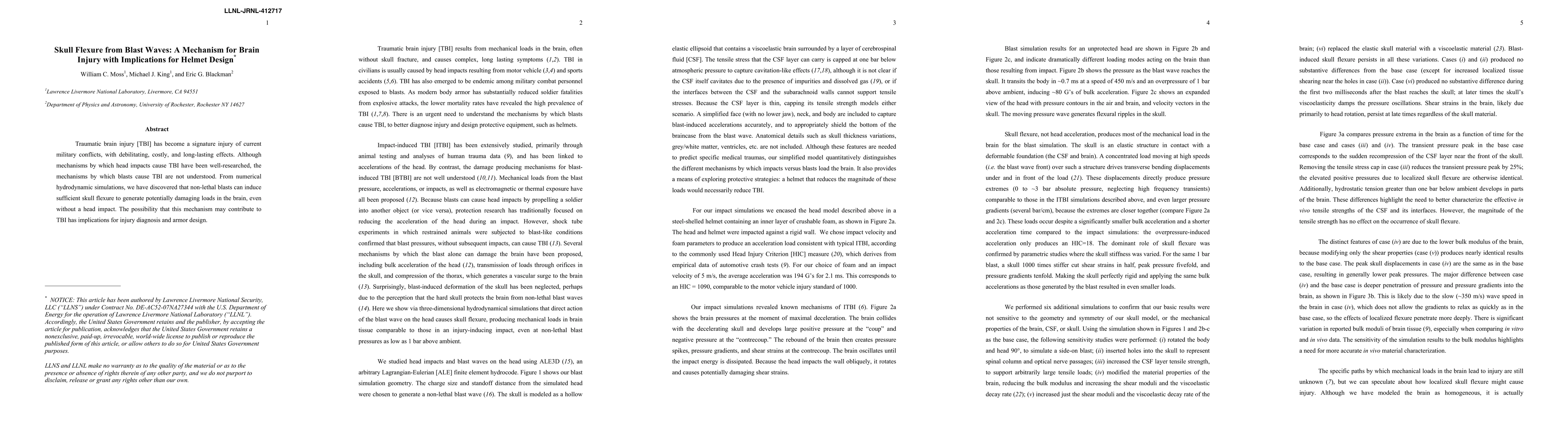 Non-lethal blasts can cause brain injury through skull flexure, potentially damaging loads in the brain without a head impact. This discovery has implications for injury diagnosis and helmet design to prevent traumatic brain injuries.