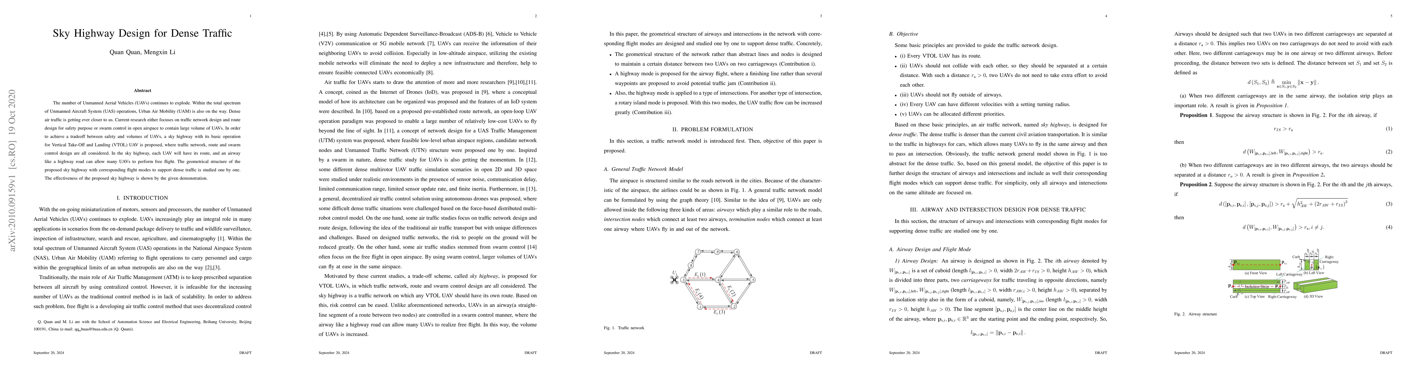 Researchers propose a 'sky highway' design to manage dense air traffic from Unmanned Aerial Vehicles (UAVs), balancing safety and volume of UAVs, with a focus on Vertical Take-Off and Landing (VTOL) operations.