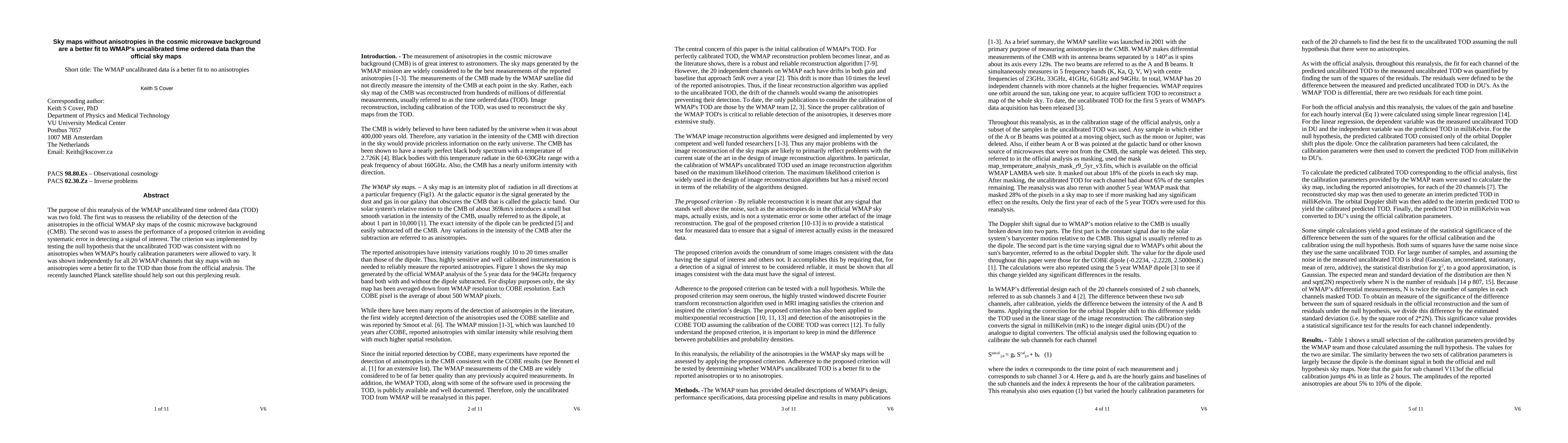 The purpose of this reanalysis of the WMAP uncalibrated time ordered data (TOD) was two fold. The first was to reassess the reliability of the detection of the anisotropies in the official WMAP sky maps of the cosmic microwave background (CMB). The second was to assess the performance of a proposed criterion in avoiding systematic error in detecting a signal of interest. The criterion was implemented by testing the null hypothesis that the uncalibrated TOD was consistent with no anisotropies when WMAP's hourly calibration parameters were allowed to vary. It was shown independently for all 20 WMAP channels that sky maps with no anisotropies were a better fit to the TOD than those from the official analysis. The recently launched Planck satellite should help sort out this perplexing result.