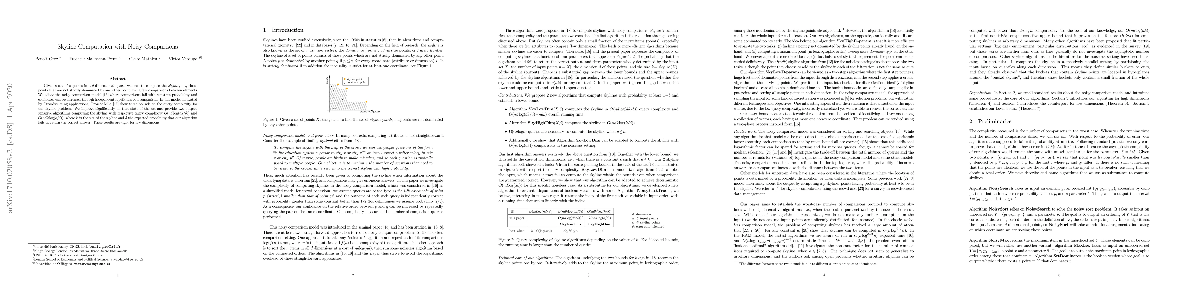 Given a set of $n$ points in a $d$-dimensional space, we seek to compute the skyline, i.e., those points that are not strictly dominated by any other point, using few comparisons between elements. We adopt the noisy comparison model [FRPU94] where comparisons fail with constant probability and confidence can be increased through independent repetitions of a comparison. In this model motivated by Crowdsourcing applications, Groz & Milo [GM15] show three bounds on the query complexity for the skyline problem. We improve significantly on that state of the art and provide two output-sensitive algorithms computing the skyline with respective query complexity $O(nd\log (dk/\delta))$ and $O(ndk\log (k/\delta))$ where $k$ is the size of the skyline and $\delta$ the expected probability that our algorithm fails to return the correct answer. These results are tight for low dimensions.