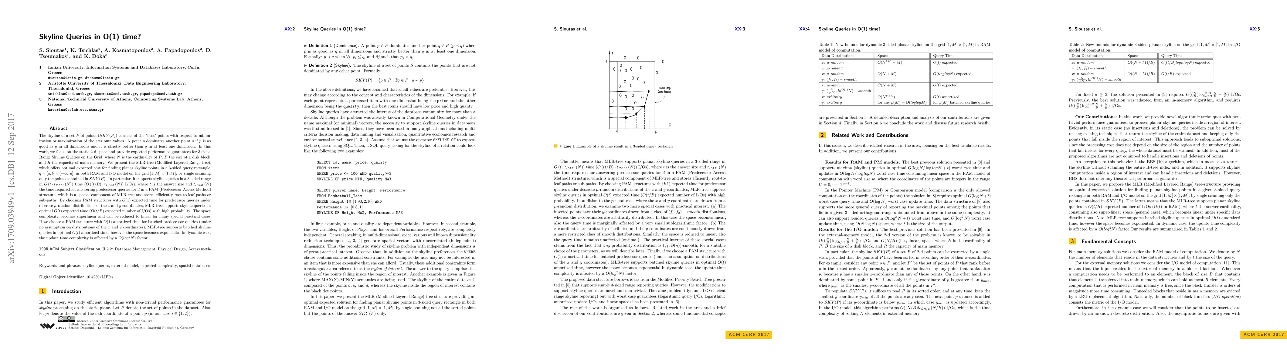 This paper introduces the MLR-tree for efficient skyline queries in a static 2-d space, achieving optimal expected performance in $O(t)$ time for finding skyline points within a 3-sided range query, with linear space complexity in many practical scenarios. The method leverages PAM structures for efficient predecessor access, ensuring near-optimal query times under various distribution assumptions.