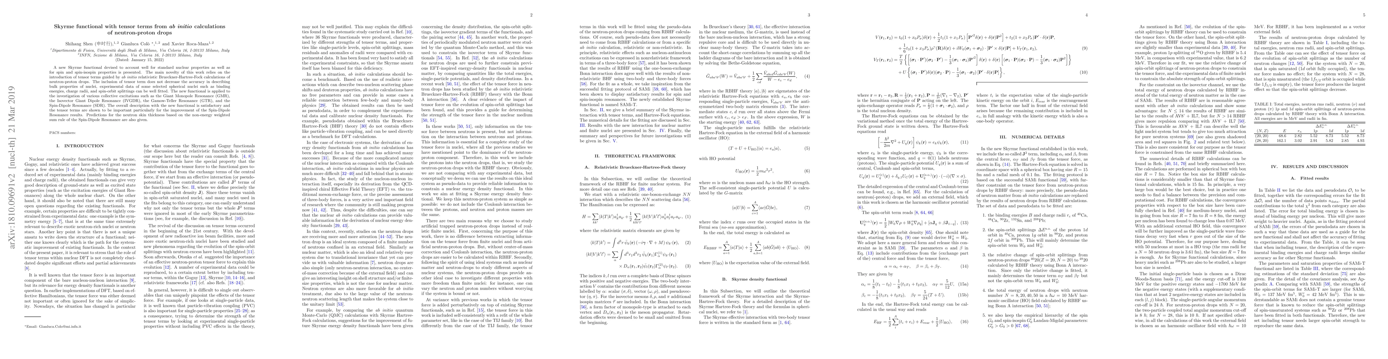 This paper introduces a new Skyrme functional enhanced with tensor terms derived from \textit{ab initio} calculations of neutron-proton drops, achieving accurate descriptions of nuclear properties and collective excitations, particularly improving Spin-Dipole Resonance results.