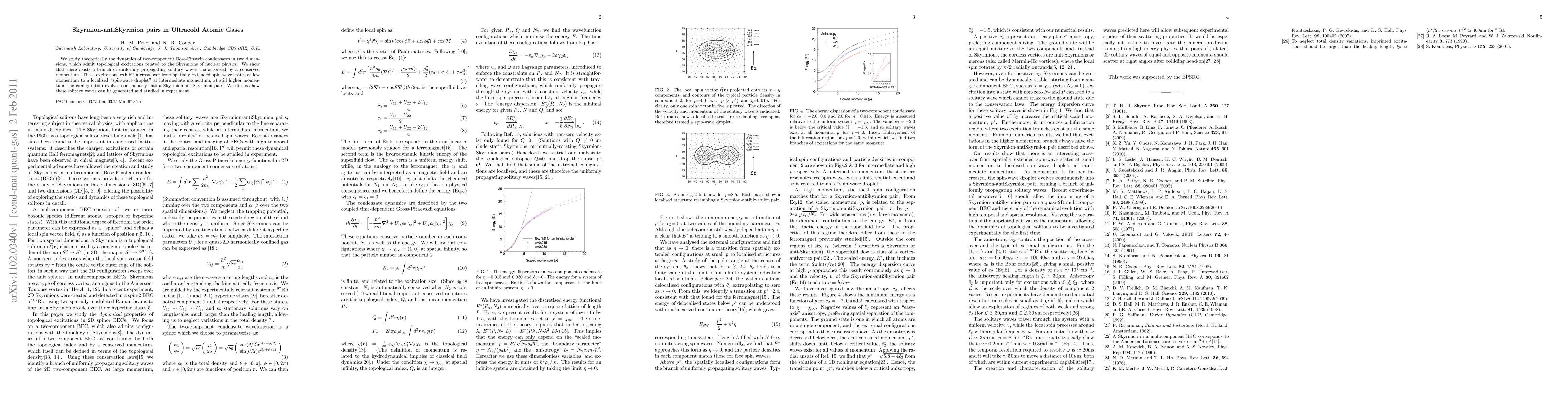 Researchers discovered solitary waves in ultracold atomic gases that can form into Skyrmion-antiSkyrmion pairs at high momentum, offering a new area of study for understanding topological excitations.