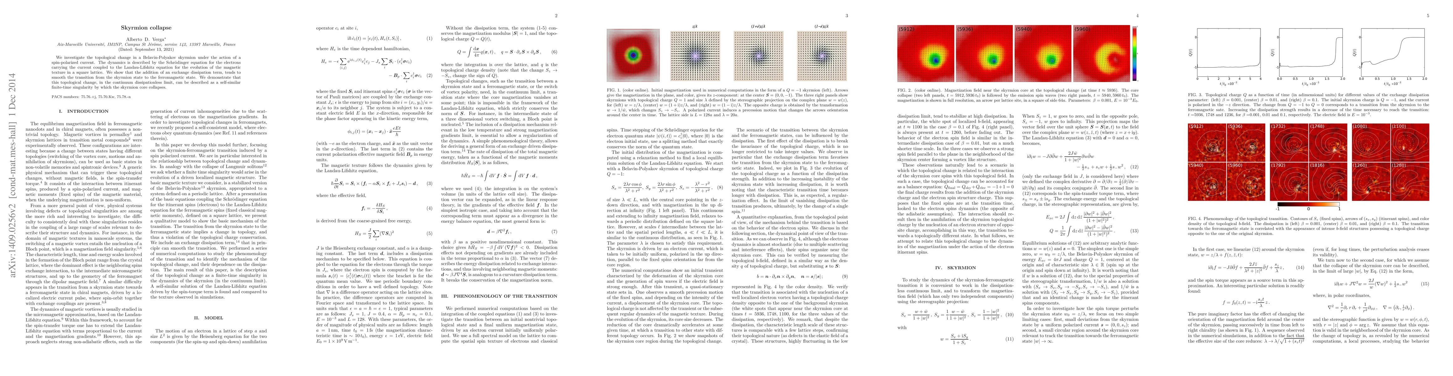 The paper presents a detailed analysis of skyrmion collapse using a combination of Schrödinger and Landau-Lifshitz equations, introducing a self-similar finite-time singularity description.