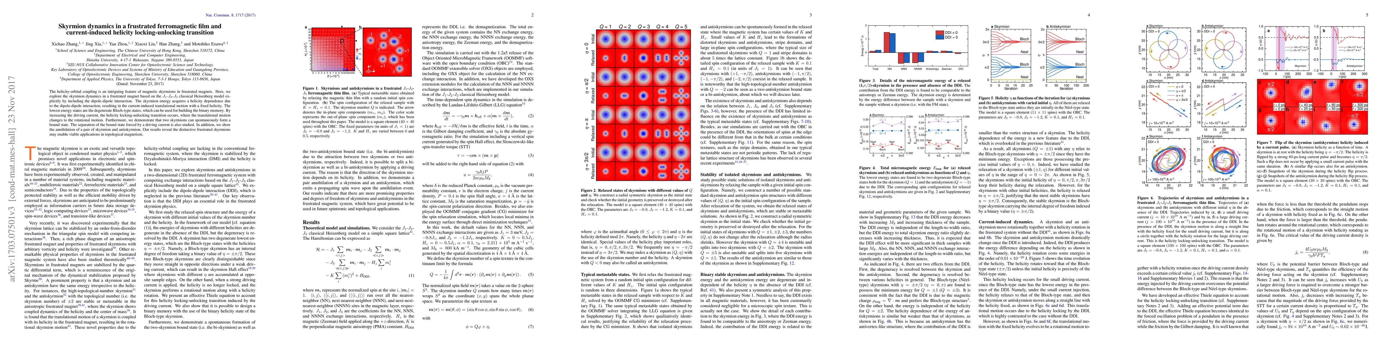 This paper investigates the dynamics of skyrmions in a frustrated ferromagnetic film, revealing a current-induced helicity locking-unlocking transition and demonstrating the formation and separation of skyrmion bound states, suggesting potential applications in topological magnetism.