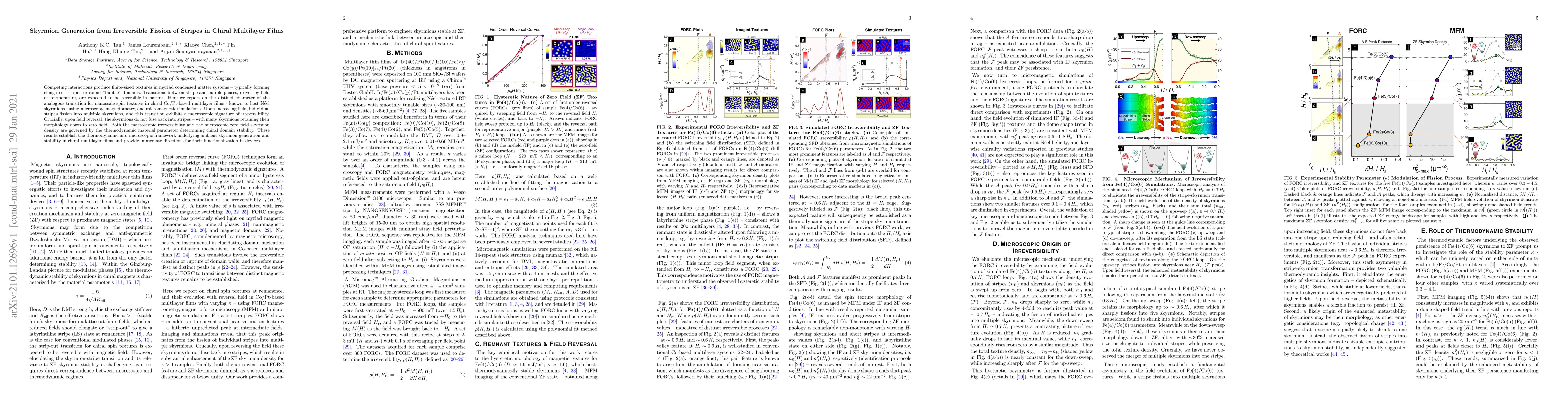 Competing interactions produce finite-size textures in myriad condensed matter systems, typically forming elongated stripe or round bubble domains. Transitions between stripe and bubble phases, driven by field or temperature, are expected to be reversible in nature. Here we report on the distinct character of the analogous transition for nanoscale spin textures in chiral Co/Pt-based multilayer films, known to host N\'{e}el skyrmions, using microscopy, magnetometry, and micromagnetic simulations. Upon increasing field, individual stripes fission into multiple skyrmions, and this transition exhibits a macroscopic signature of irreversibility. Crucially, upon field reversal, the skyrmions do not fuse back into stripes, with many skyrmions retaining their morphology down to zero field. Both the macroscopic irreversibility and the microscopic zero-field skyrmion density are governed by the thermodynamic material parameter determining chiral domain stability. These results establish the thermodynamic and microscopic framework underlying ambient skyrmion generation and stability in chiral multilayer films and provide immediate directions for their functionalization in devices.