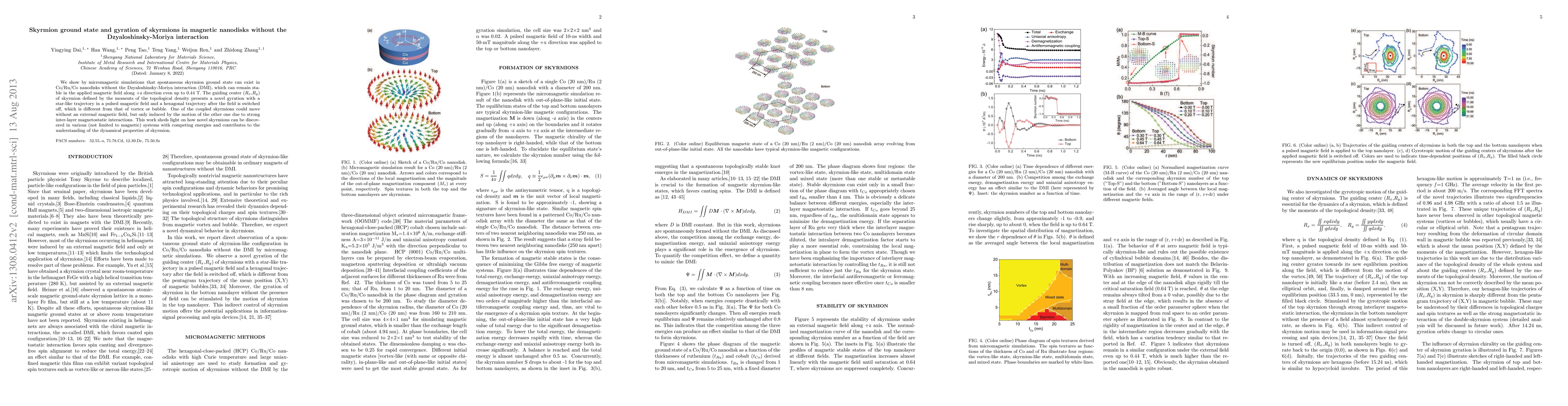This research demonstrates the existence of a stable skyrmion ground state in Co/Ru/Co nanodisks without Dzyaloshinsky-Moriya interaction, showing unique gyration patterns. The findings suggest potential applications for novel skyrmion behavior in magnetic materials.