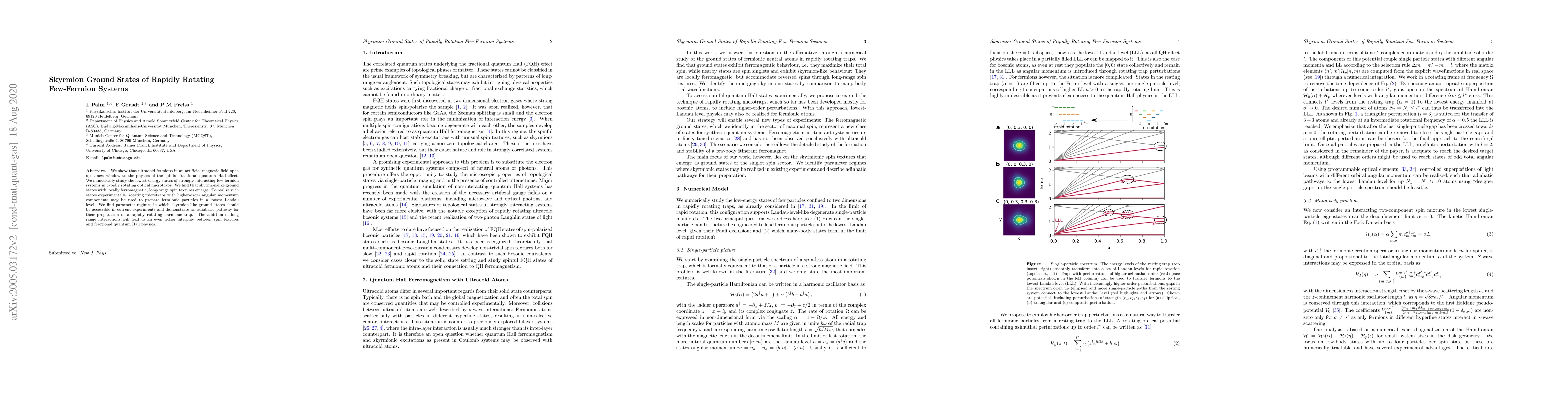 Researchers have discovered that rapidly rotating ultracold fermions can create skyrmion-like ground states with long-range spin textures, opening up new possibilities for the study of the fractional quantum Hall effect.