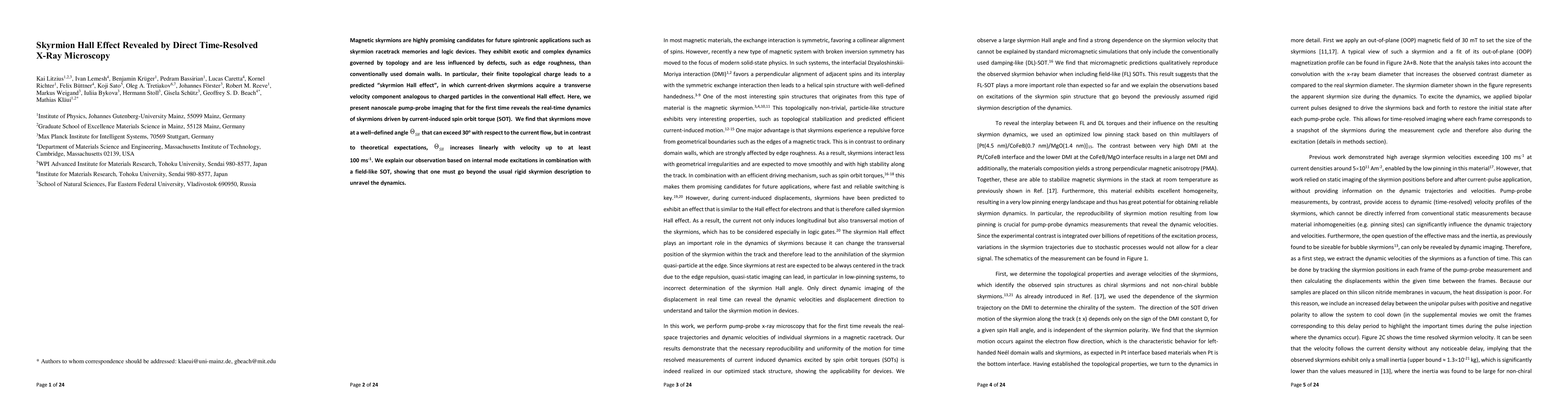 This paper reveals real-time dynamics of magnetic skyrmions using time-resolved X-ray microscopy, showing they exhibit a skyrmion Hall effect with a transverse velocity component. Contrary to theoretical predictions, the observed angle increases linearly with velocity, suggesting internal mode excitations and field-like spin-orbit torque play a role in the dynamics.