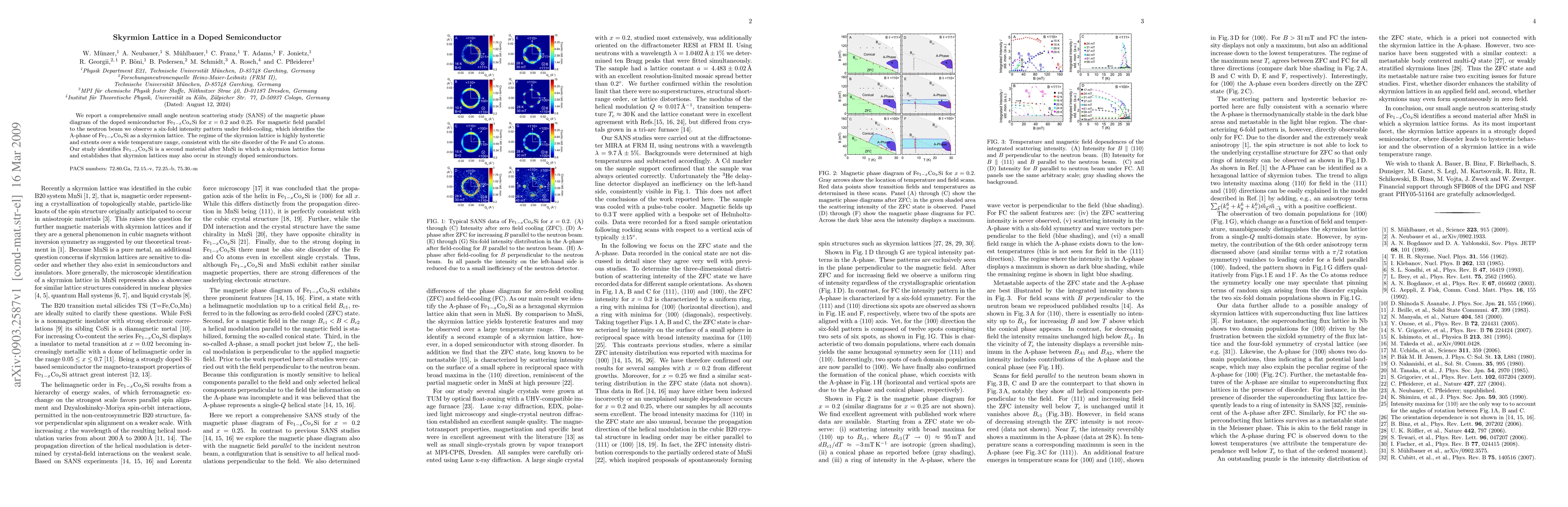 We report a comprehensive small angle neutron scattering study (SANS) of the magnetic phase diagram of the doped semiconductor Fe_{1-x}Co_{x}Si for x=0.2 and 0.25. For magnetic field parallel to the neutron beam we observe a six-fold intensity pattern under field-cooling, which identifies the A-phase of Fe_{1-x}Co_{x}Si as a skyrmion lattice. The regime of the skyrmion lattice is highly hysteretic and extents over a wide temperature range, consistent with the site disorder of the Fe and Co atoms. Our study identifies Fe_{1-x}Co_{x}Si is a second material after MnSi in which a skyrmion lattice forms and establishes that skyrmion lattices may also occur in strongly doped semiconductors.