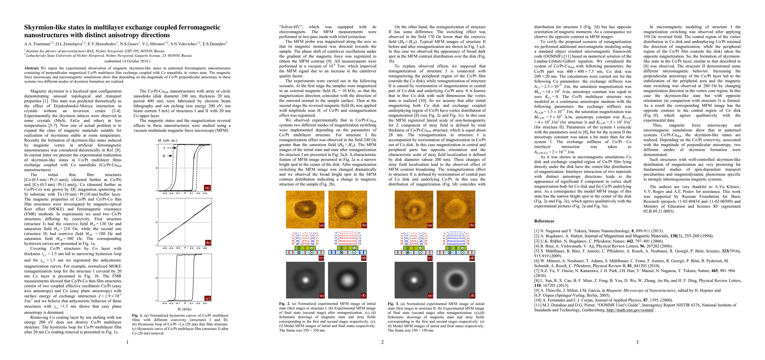 This research reports the observation of skyrmion-like states in multilayer ferromagnetic nanostructures with distinct anisotropy directions, revealing two modes of skyrmion formation influenced by the perpendicular anisotropy of Co/Pt films. The findings are supported by magnetic force microscopy and micromagnetic simulations.