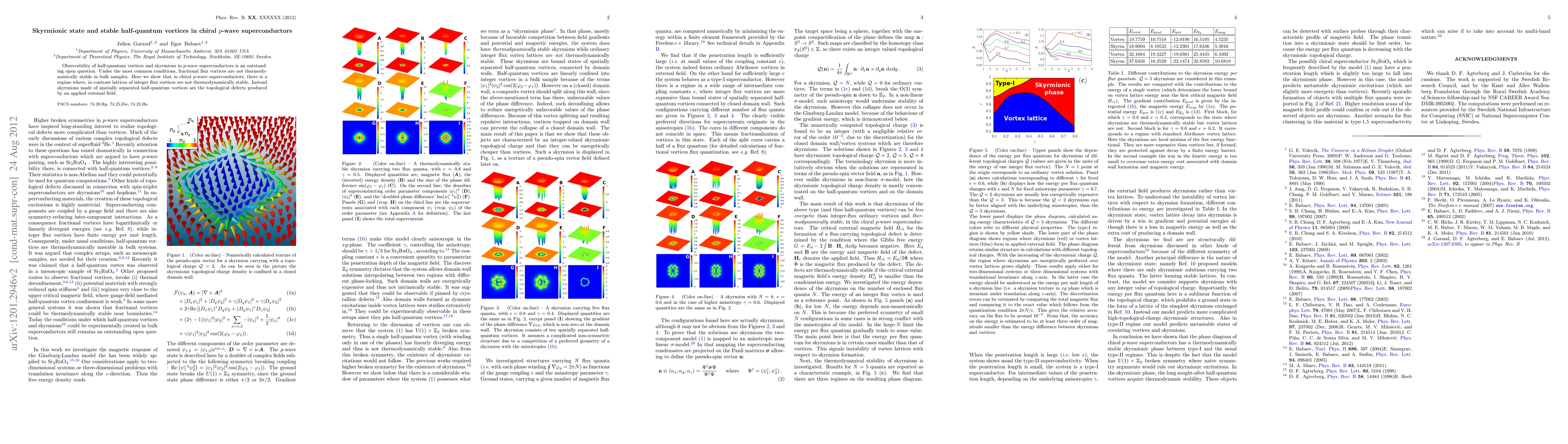 This paper demonstrates that chiral p-wave superconductors can host stable skyrmionic states composed of half-quantum vortices, contrasting with the usual stability of integer flux vortices, under specific conditions. These topological defects emerge in response to an applied external field.