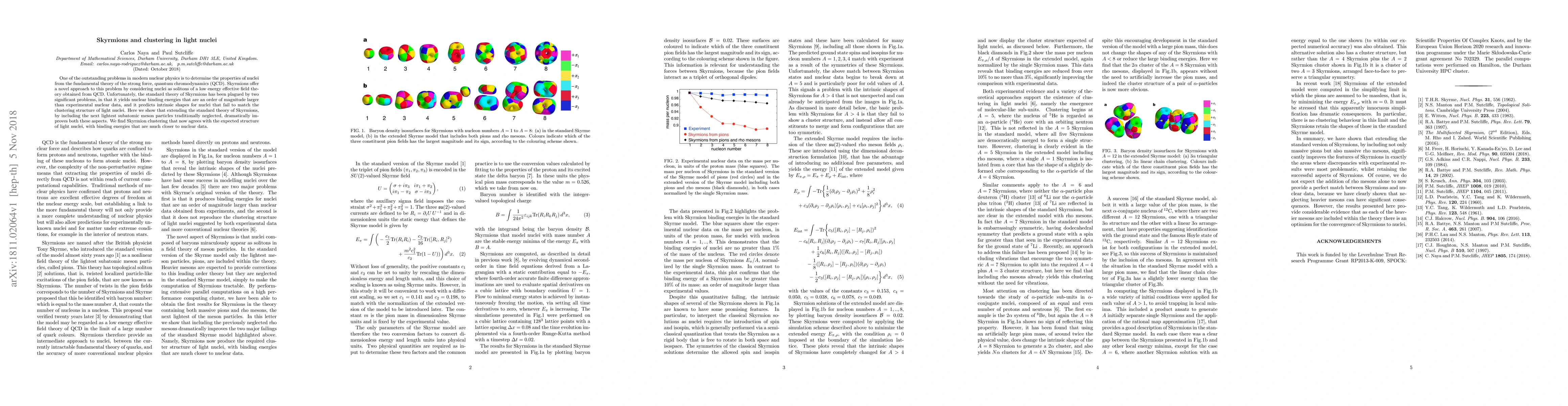 One of the outstanding problems in modern nuclear physics is to determine the properties of nuclei from the fundamental theory of the strong force, quantum chromodynamics (QCD). Skyrmions offer a novel approach to this problem by considering nuclei as solitons of a low energy effective field theory obtained from QCD. Unfortunately, the standard theory of Skyrmions has been plagued by two significant problems, in that it yields nuclear binding energies that are an order of magnitude larger than experimental nuclear data, and it predicts intrinsic shapes for nuclei that fail to match the clustering structure of light nuclei. Here we show that extending the standard theory of Skyrmions, by including the next lightest subatomic meson particles traditionally neglected, dramatically improves both these aspects. We find Skyrmion clustering that now agrees with the expected structure of light nuclei, with binding energies that are much closer to nuclear data.