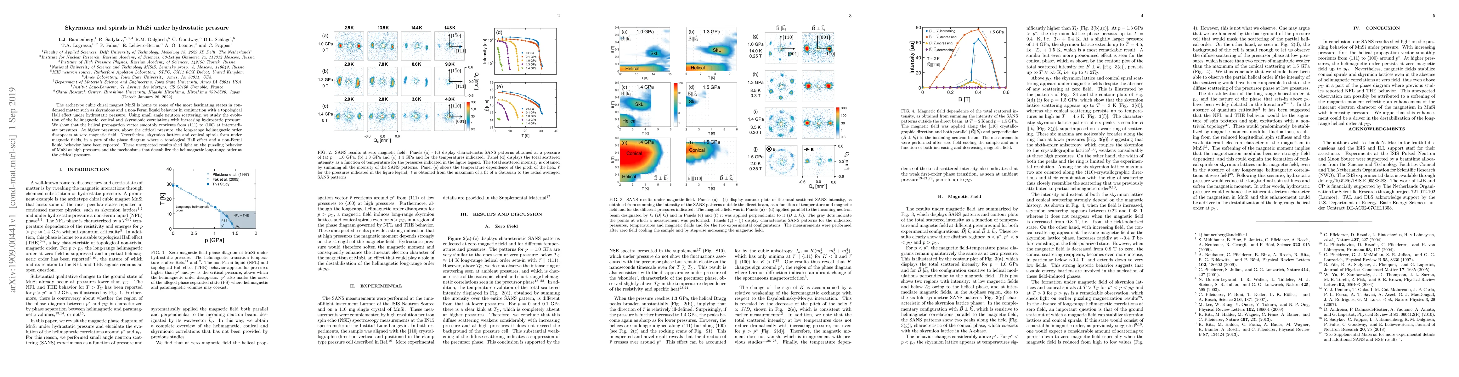 The archetype cubic chiral magnet MnSi is home to some of the most fascinating states in condensed matter such as skyrmions and a non-Fermi liquid behavior in conjunction with a topological Hall effect under hydrostatic pressure. Using small angle neutron scattering, we study the evolution of the helimagnetic, conical and skyrmionic correlations with increasing hydrostatic pressure. We show that the helical propagation vector smoothly reorients from $\langle 111 \rangle$ to $\langle100\rangle$ at intermediate pressures. At higher pressures, above the critical pressure, the long-range helimagnetic order disappears at zero magnetic field. Nevertheless, skyrmion lattices and conical spirals form under magnetic fields, in a part of the phase diagram where a topological Hall effect and a non-Fermi liquid behavior have been reported. These unexpected results shed light on the puzzling behavior of MnSi at high pressures and the mechanisms that destabilize the helimagnetic long-range order at the critical pressure.