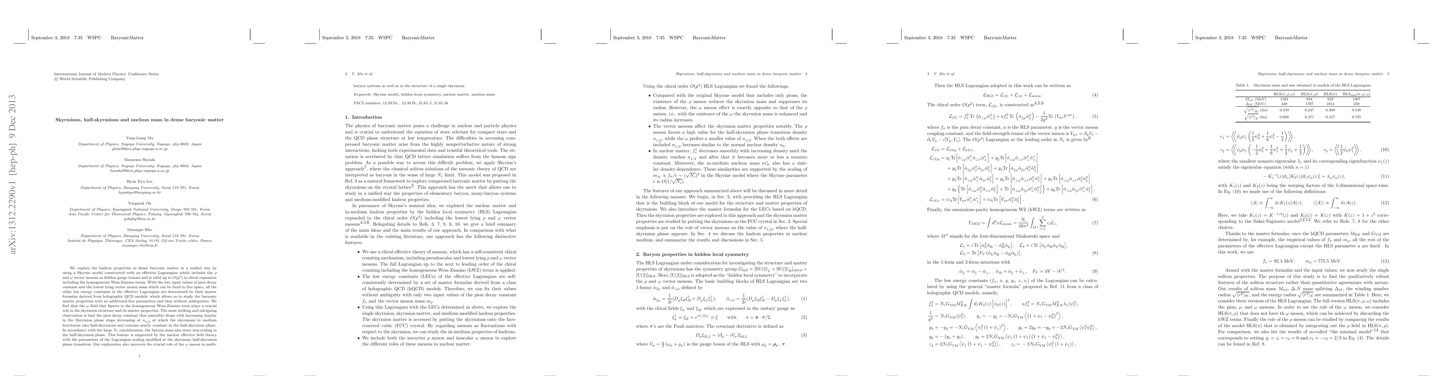 We explore the hadron properties in dense baryonic matter in a unified way by using a Skyrme model constructed with an effective Lagrangian which includes the $\rho$ and $\omega$ vector mesons as hidden gauge bosons and is valid up to $O(p^4)$ in chiral expansion including the homogeneous Wess-Zumino terms. With the two input values of pion decay constant and the lowest lying vector meson mass which can be fixed in free space, all the other low energy constants in the effective Lagrangian are determined by their master formulas derived from holographic QCD models, which allows us to study the baryonic matter properties with no additional free parameters and thus without ambiguities. We find that the $\omega$ field that figures in the homogeneous Wess-Zumino term plays a crucial role in the skyrmion structure and its matter properties. The most striking and intriguing observation is that the pion decay constant that smoothly drops with increasing density in the Skyrmion phase stops decreasing at $n_{1/2}^{}$ at which the skyrmions in medium fractionize into half-skyrmions and remains nearly constant in the half-skyrmion phase. In accordance with the large $N_c$ consideration, the baryon mass also stays non-scaling in the half-skyrmion phase. This feature is supported by the nuclear effective field theory with the parameters of the Lagrangian scaling modified at the skyrmion--half-skyrmion phase transition. Our exploration also uncovers the crucial role of the $\omega$ meson in multi-baryon systems as well as in the structure of a single skyrmion.