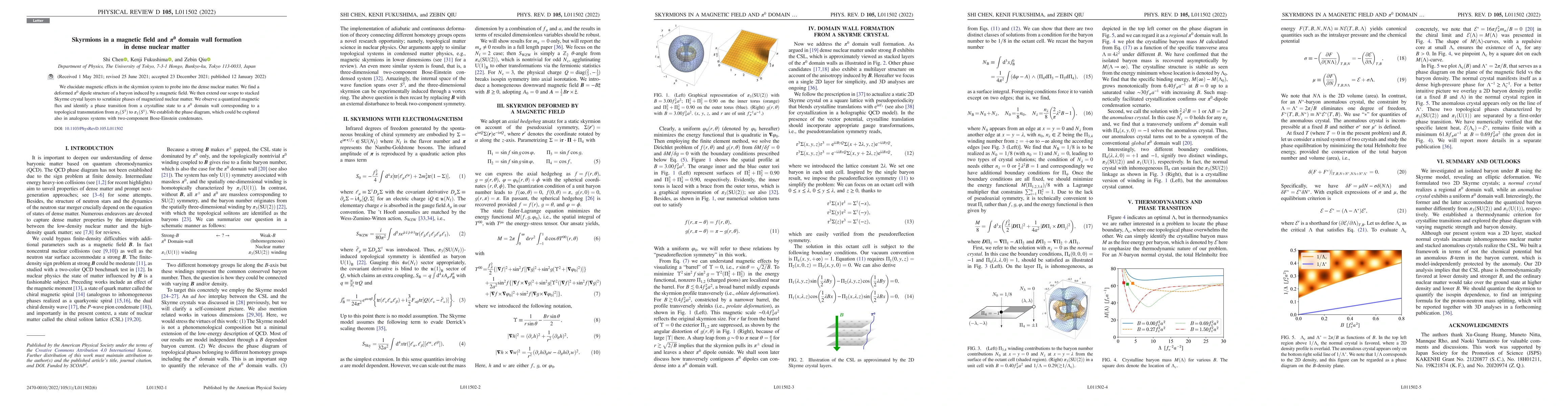 This paper investigates magnetic effects on skyrmions in dense nuclear matter, revealing a deformed $\pi^0$ dipole structure due to magnetic fields. It identifies a phase transition from a crystalline state to a $\pi^0$ domain wall, accompanied by a topological transmutation, and establishes a phase diagram applicable to analogous systems.