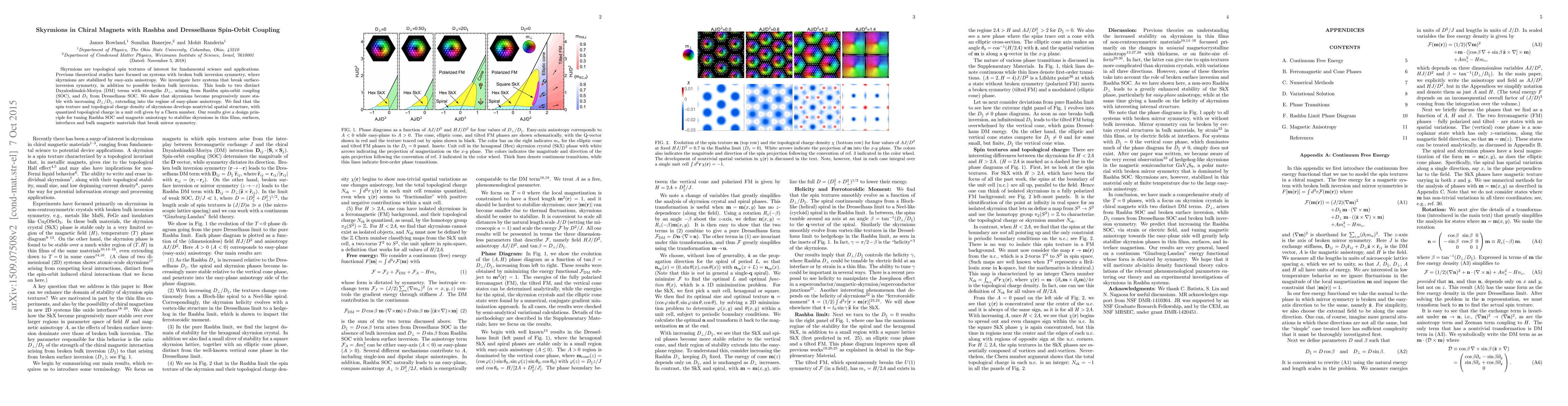 Skyrmions are topological spin textures of interest for fundamental science and applications. Previous theoretical studies have focused on systems with broken bulk inversion symmetry, where skyrmions are stabilized by easy-axis anisotropy. We investigate here systems that break surface inversion symmetry, in addition to possible broken bulk inversion. This leads to two distinct Dzyaloshinskii-Moriya (DM) terms with strengths $D_\perp$, arising from Rashba spin-orbit coupling (SOC), and $D_\parallel$ from Dresselhaus SOC. We show that skyrmions become progressively more stable with increasing $D_\perp/D_\parallel$, extending into the regime of easy-plane anisotropy. We find that the spin texture and topological charge density of skyrmions develops nontrivial spatial structure, with quantized topological charge in a unit cell given by a Chern number. Our results give a design principle for tuning Rashba SOC and magnetic anisotropy to stabilize skyrmions in thin films, surfaces, interfaces and bulk magnetic materials that break mirror symmetry.