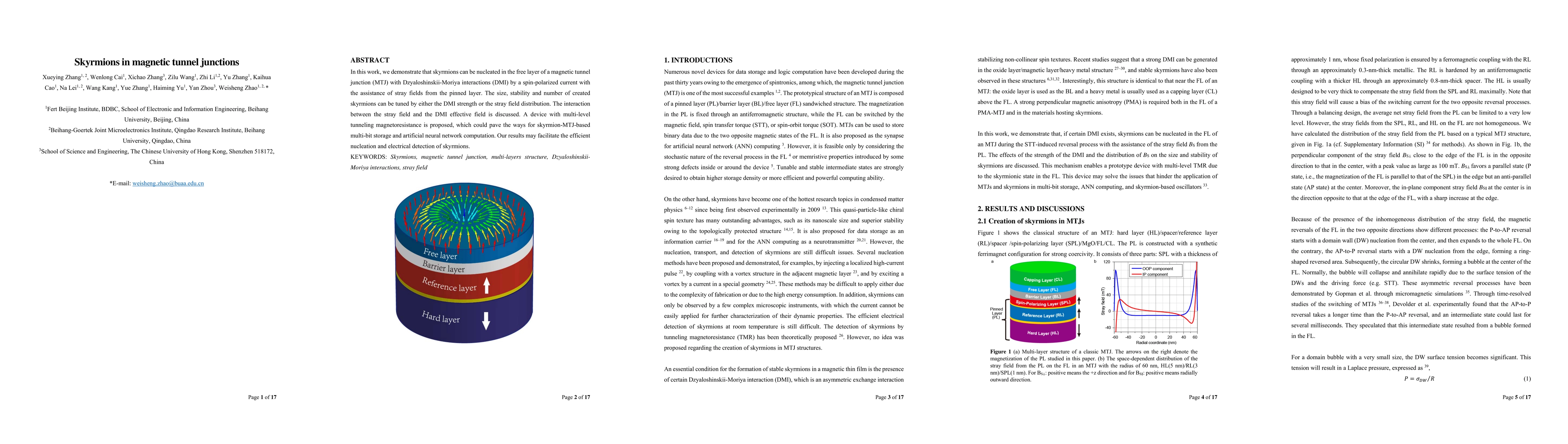 Researchers demonstrate the creation of skyrmions in magnetic tunnel junctions using a spin-polarized current with assisted stray fields, enabling potential applications for multi-bit storage and artificial neural networks.