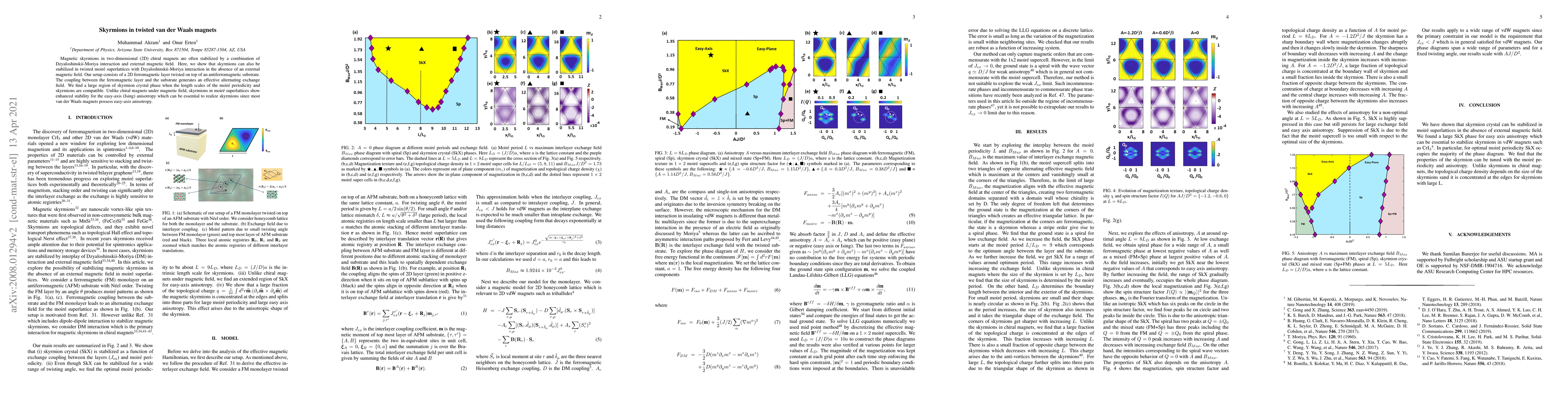 This research demonstrates that magnetic skyrmions can be stabilized in twisted van der Waals moiré superlattices without an external magnetic field by utilizing the effective alternating exchange field generated from the coupling between a ferromagnetic layer and an antiferromagnetic substrate. The study highlights the enhanced stability of skyrmions in these systems due to compatible length scales and Ising anisotropy, which is beneficial for realizing skyrmions in van der Waals magnets.
