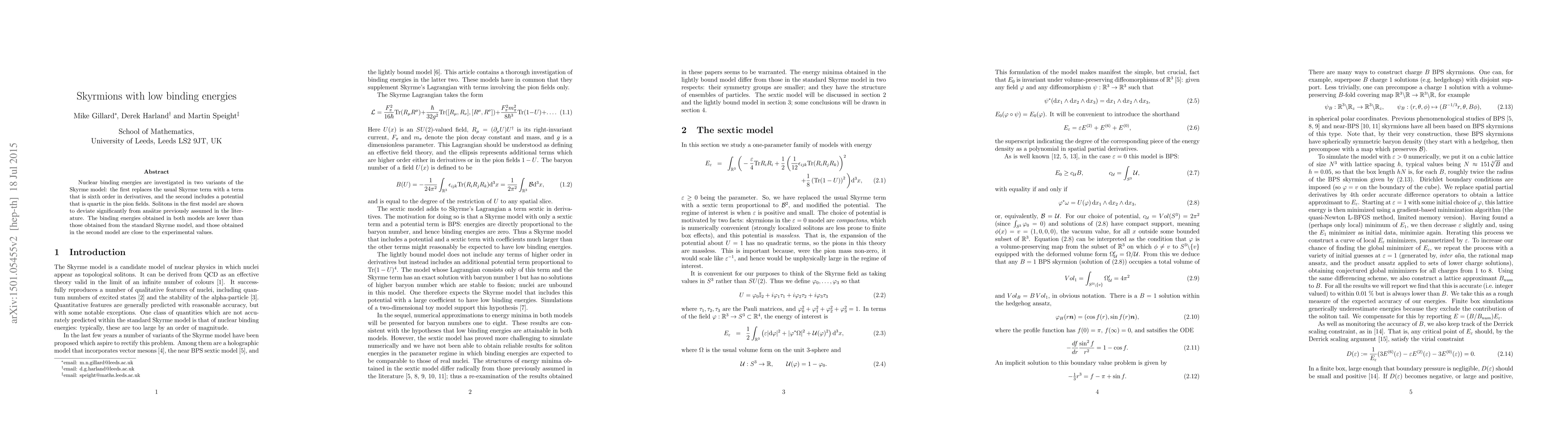 Nuclear binding energies are investigated in two variants of the Skyrme model: the first replaces the usual Skyrme term with a term that is sixth order in derivatives, and the second includes a potential that is quartic in the pion fields. Solitons in the first model are shown to deviate significantly from ans\"atze previously assumed in the literature. The binding energies obtained in both models are lower than those obtained from the standard Skyrme model, and those obtained in the second model are close to the experimental values.